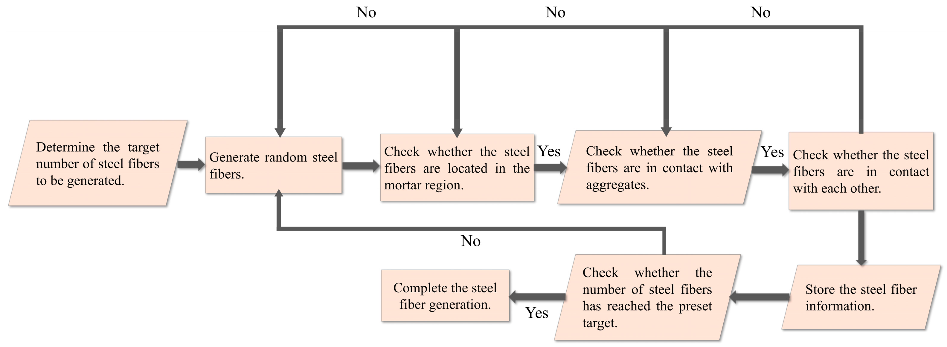 - Liu, W.; Guo, Y.; Shao, Z.; Qiao, R.; Zhou, H. Study on mesoscopic modeling method and mechanical properties of steel fiber reinforced concrete. Chin. J. Appl. Mech. 2024, 41, 868–877. [Google Scholar] [CrossRef]