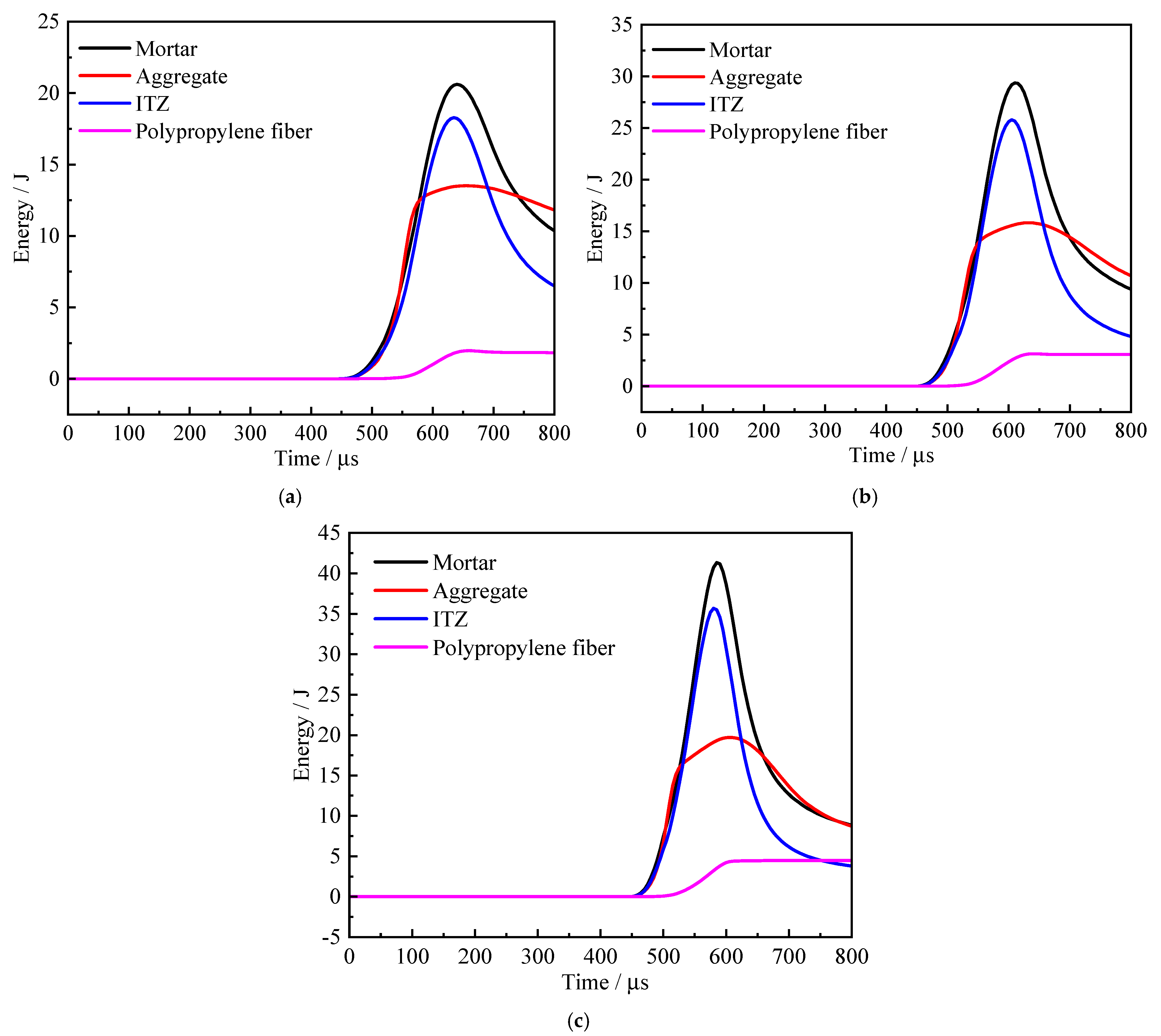 - The polypropylene fibers improved the dynamic mechanical performance by dissipating energy through both fiber fracture and pull-out mechanisms. Furthermore, as the impact velocity increased, the fibers absorbed more energy, leading to a progressive increase in their own damage.