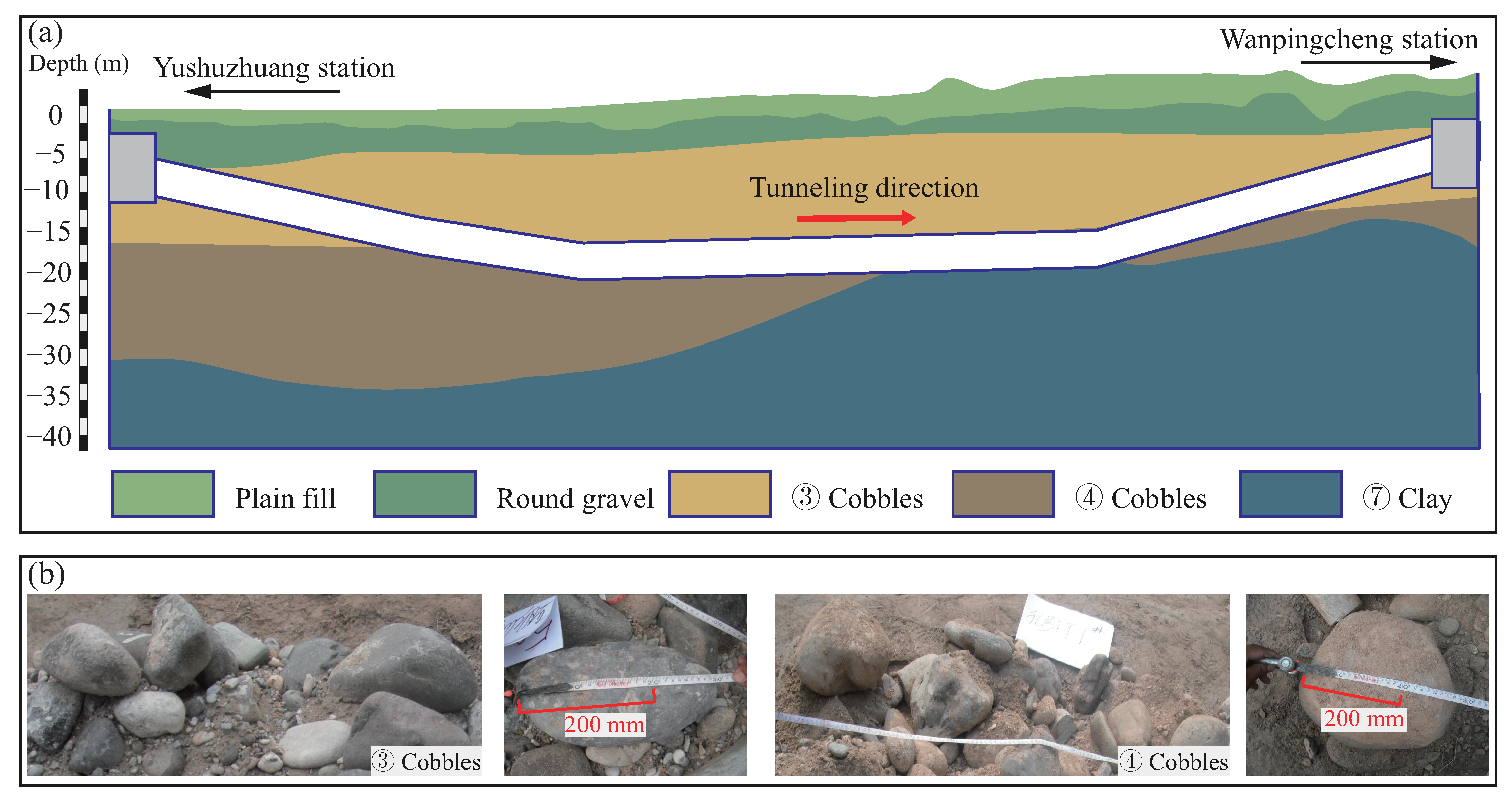 - Yang, Z.; Shao, X.; Zhang, Z.; Feng, J.; Han, H.; Yang, X.; Jiang, Y. Engineering geological characteristics of boulders in underground: A case study from the Yu-Wan Section of Beijing Metro Line 16. Bull. Eng. Geol. Environ. 2022, 81, 402. [Google Scholar] [CrossRef]