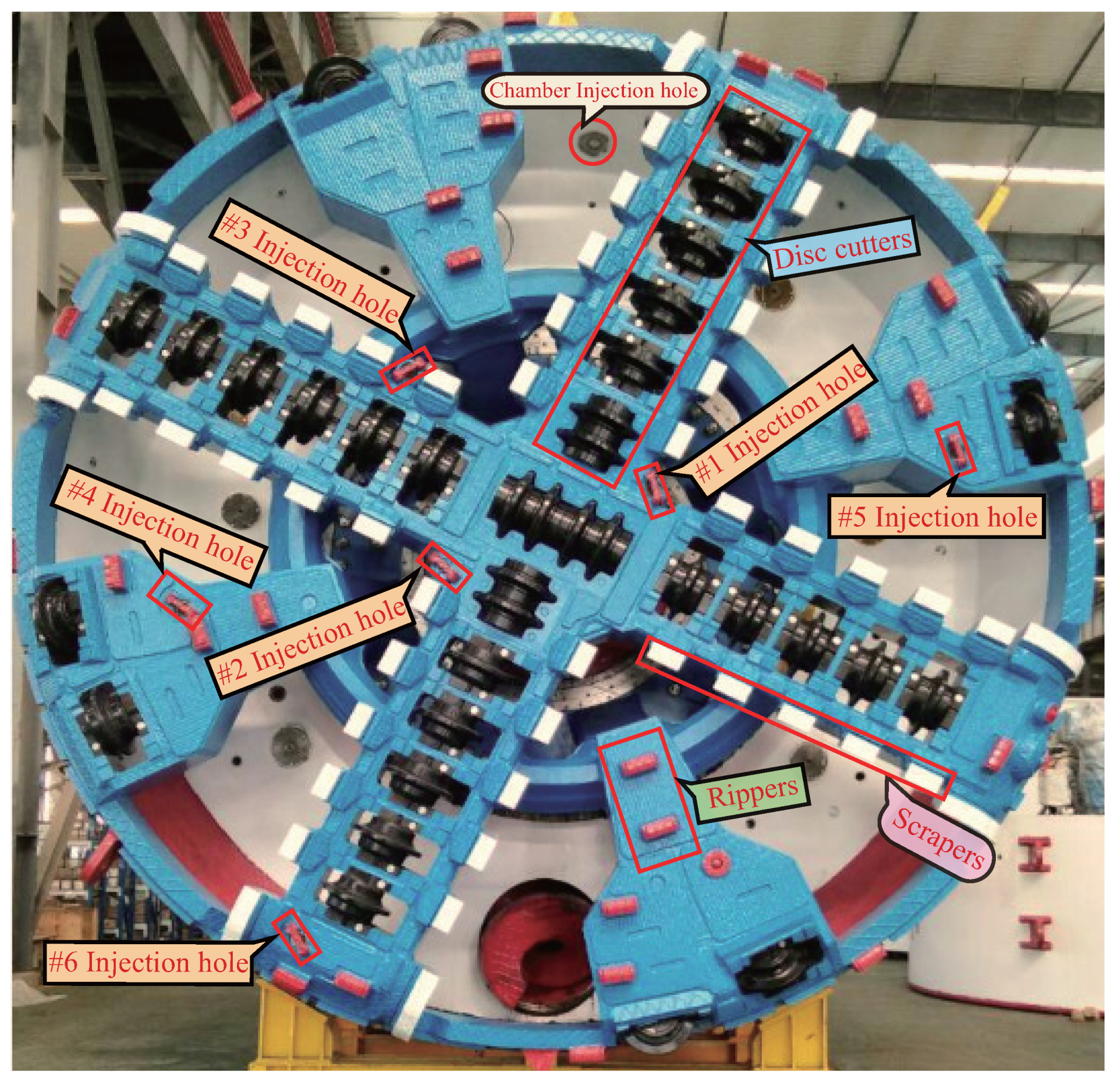 - Wei, Y.; Yang, Y.; Qiu, T. Effects of soil conditioning on tool wear for earth pressure balance shield tunneling in sandy gravel based on laboratory test. J. Test. Eval. 2021, 49, 2692–2706. [Google Scholar] [CrossRef]