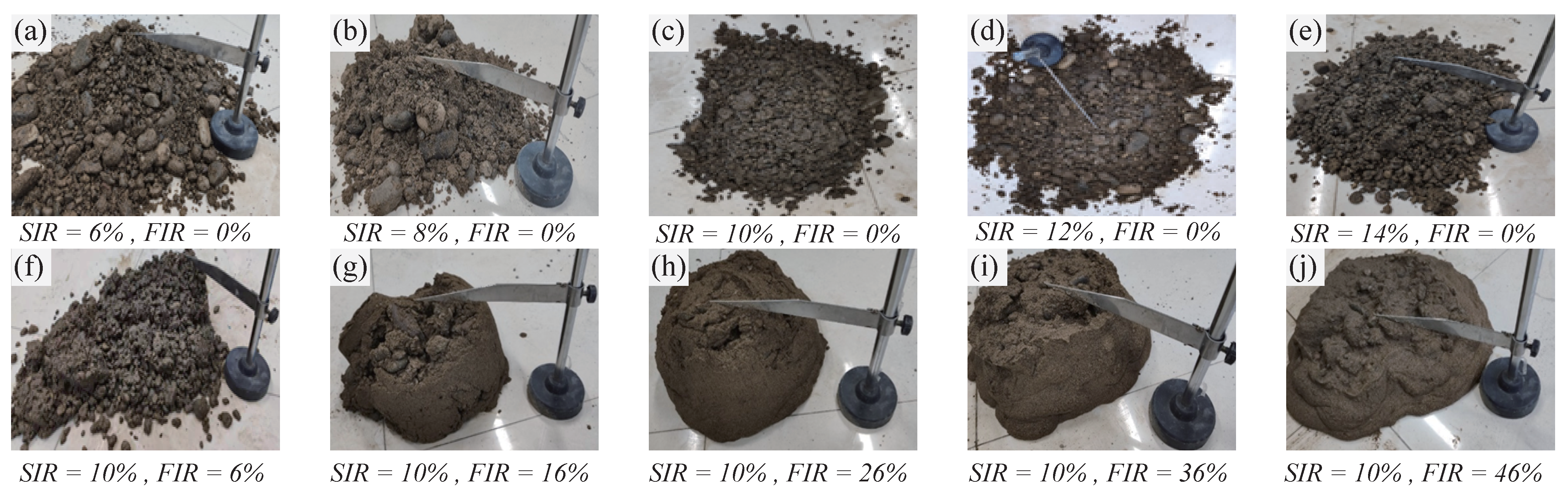 - Wang, S.; Zhu, H.; Liu, P.; Qu, T. Soil slaking under the effect of dispersants: Characteristics and mechanism. Environ. Earth Sci. 2024, 83, 397. [Google Scholar] [CrossRef]