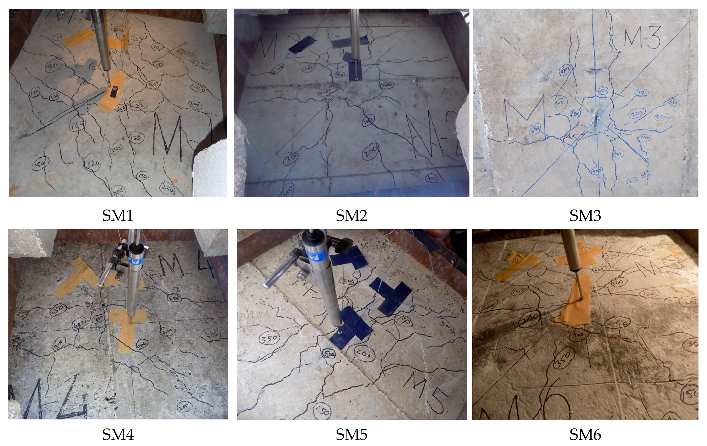 Figure 6. Observations during testing revealed that cracks formed at the slab’s center and consistently propagated outward toward the periphery.