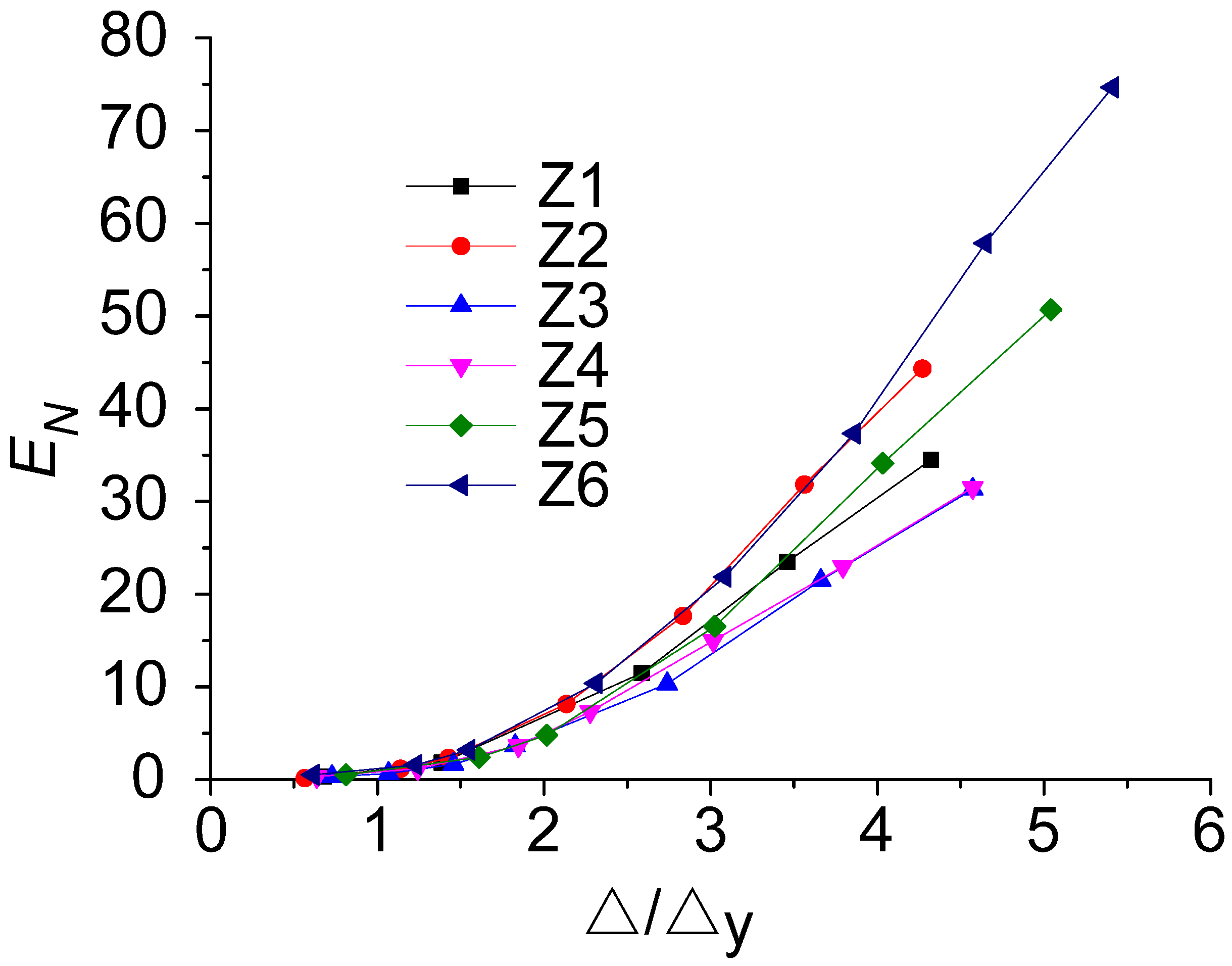 (2) During the initial loading stage, the equivalent-strength substitution of stirrups has minimal impact on the cumulative energy consumption of specimens, regardless of the stirrup ratio. In the middle and later stages of displacement loading, when the stirrup ratio is low, the cumulative energy consumption capacity of specimens improves under the same displacement ductility. When the stirrup ratio is high, however, the cumulative energy dissipation performance of specimens with high-strength stirrups significantly surpasses that of specimens with ordinary stirrups under identical displacement ductility, with the performance gap gradually widening as loading progresses.