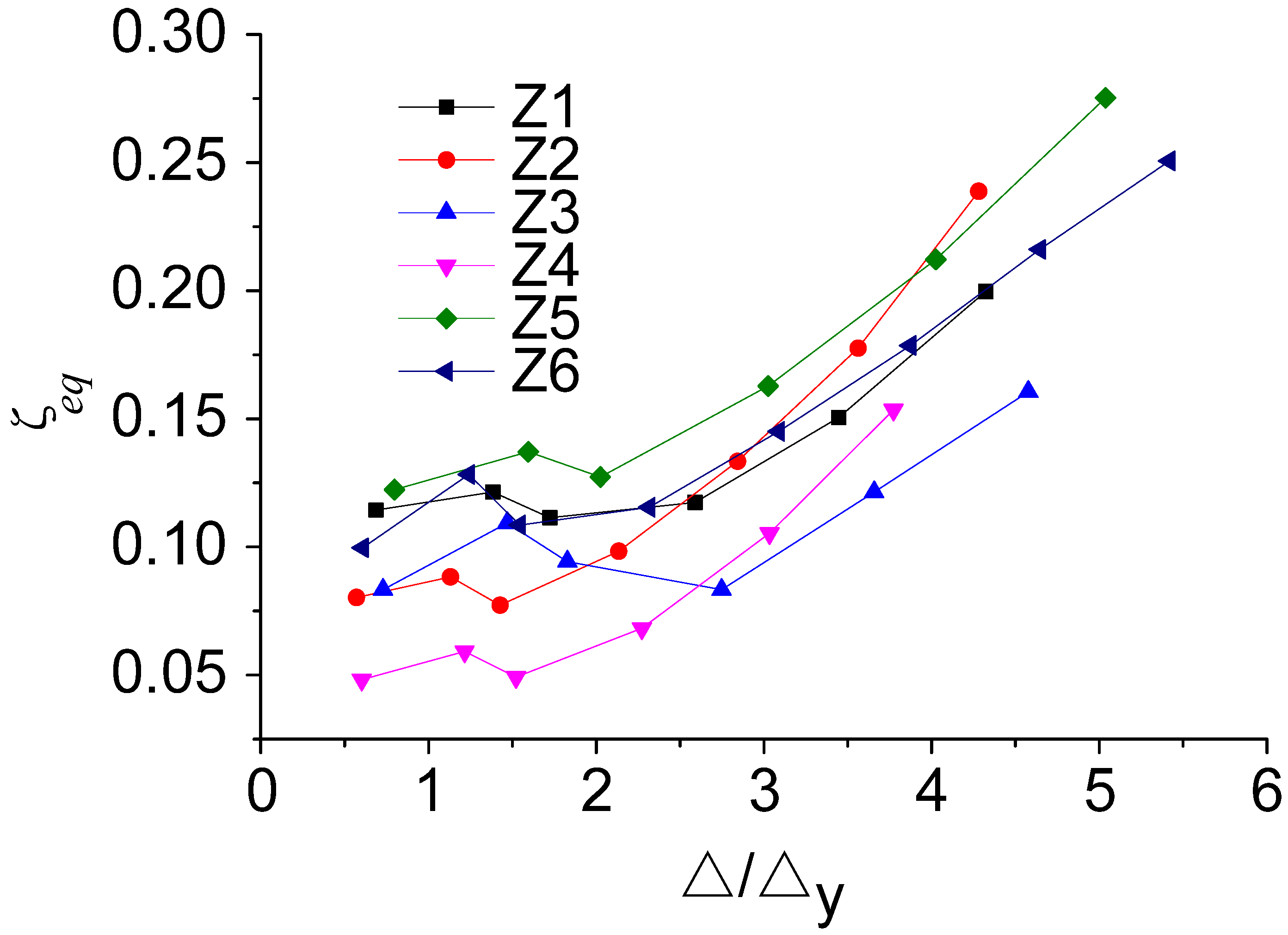 δu) is derived by dividing the pseudo-static test result by 0.62 for damage index computation. Key parameters include the following: (1)