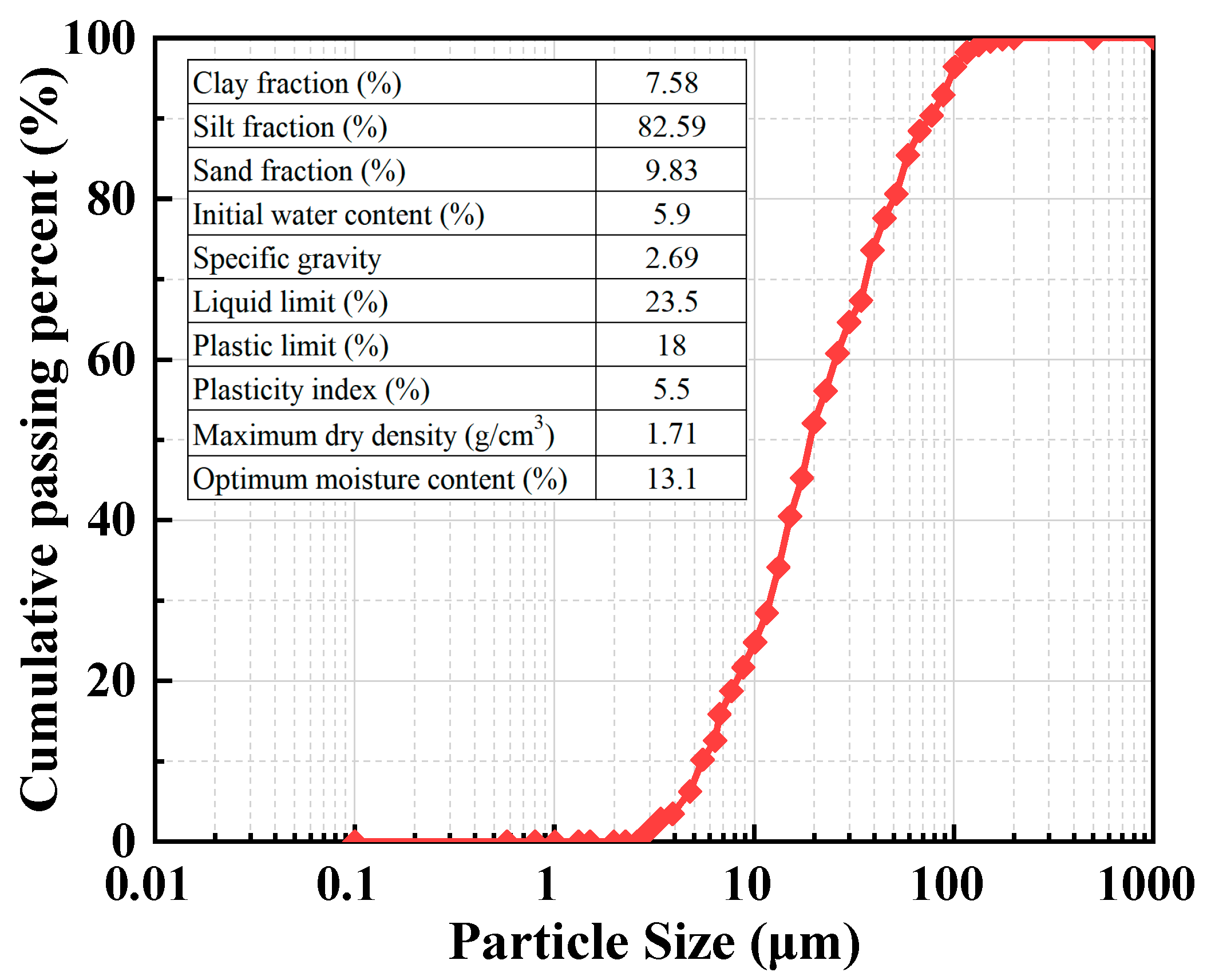 - JTG 3430; Test Methods of Soils for Highway Engineering. Ministry of Transport of the People’s Republic of China: Beijing, China, 2020.