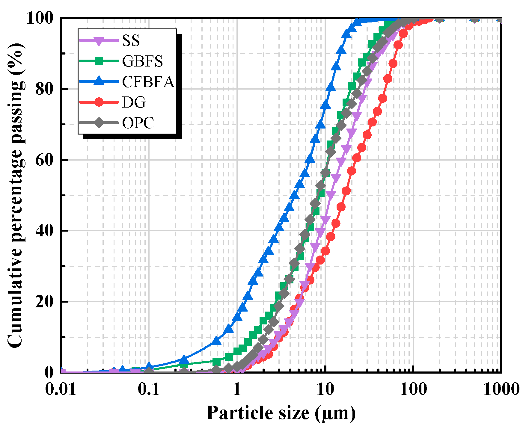 - Wang, H.; Zhang, J.; Gu, F. Hydration mechanisms of geopolymer grouting materials derived from circulating fluidized bed fly ash and ground granulated blast furnace slag. Powder Technol. 2025, 466, 121402. [Google Scholar] [CrossRef]