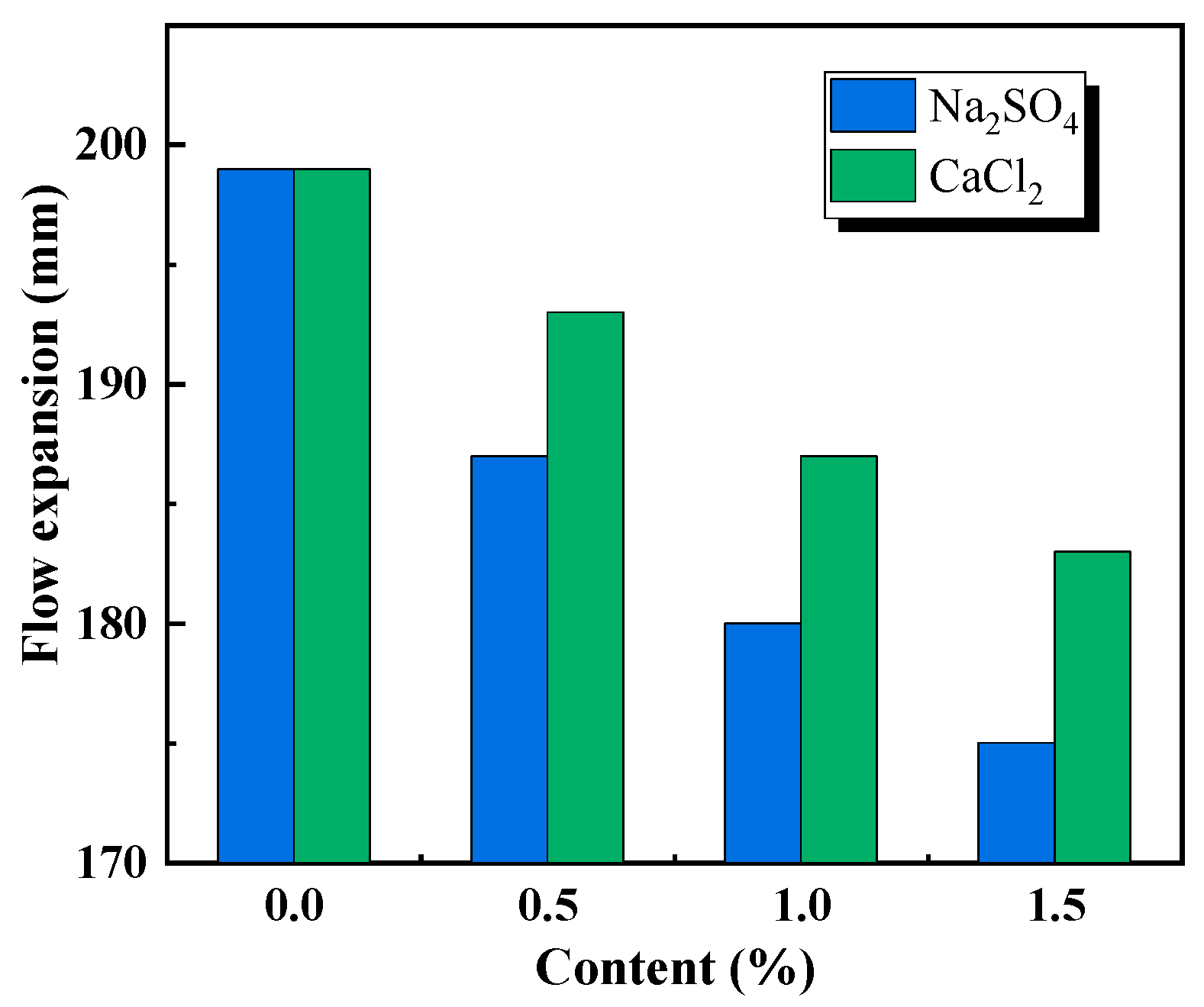 4.2.1. Effect of Early-Strength Agents on the Flow Expansion of MSWC-FSS