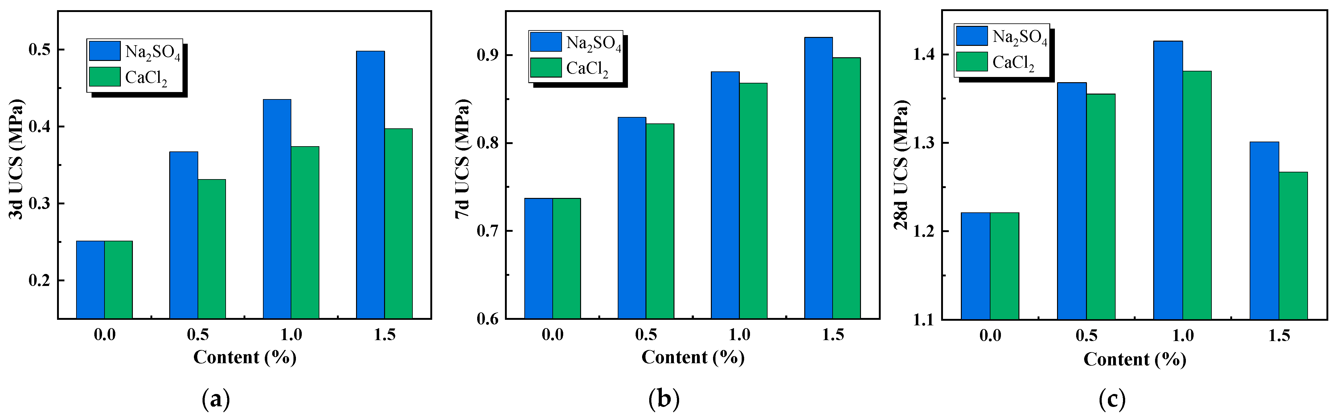 4.2.3. Effect of Early-Strength Agents on the UCS of MSWC-FSS