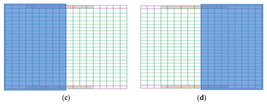 Distribution form of live load over half-span. (a) Full-span arrangement (SC6-I); (b) Lower crossbar arrangement (SC6-II); (c) Left-side layout (SC6-III); (d) Right half-span arrangement (SC6-IV).
