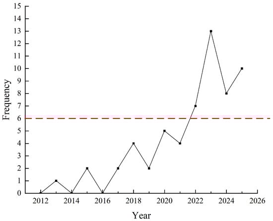 As shown in Figure 2, the amount of literature on this topic has increased, particularly since 2020. The numbers of articles published on transboundary waste management in 2023 and 2024 were 13 and 8, respectively. As of 12 November 2025, nine papers had been published that year. This indicates that the volume of literature in 2025 is on an upward trend. Furthermore, the number of publications in each of the past three years has exceeded the levels observed in 2022 and earlier. This indicates a growing interest in and heightened focus among scholars on cross-regional waste management. The rise in this research boom is inseparable from the advancement of relevant policies and technological progress worldwide. At the policy level, regional strategies such as China’s “Zero-Waste Cities” initiative [26] and the Circular Economy Action Plan under the EU Green New Deal [27] have designated cross-regional collaboration as a key pathway for waste management. Simultaneously, international regulatory frameworks such as the Basel Convention [28] amendments have spurred greater academic focus on compliance in transboundary waste movements. Technologically, the maturity of blockchain technology [29,30] and digital tools such as route optimization algorithms [31] has made real-time tracking and scheduling of cross-regional waste feasible. In recent years, articles concerning cross-regional waste management have focused on various aspects, such as stakeholder relationships [32,33], management mechanisms for the waste life cycle [34,35], waste material flow analysis [36,37], and waste trade mechanisms [30,38].