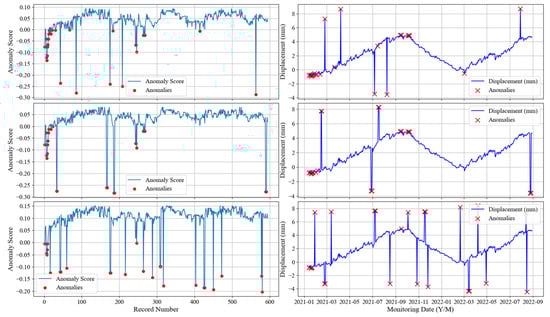 Meanwhile, outliers in monitoring data can significantly distort model predictions [13]. Isolation Forest (iForest), as an unsupervised anomaly detection algorithm [14], rapidly identifies sparse anomalies in high-dimensional data through random feature partitioning, garnering widespread attention and continuous improvements across various fields. Karczmarek et al. [15] enhanced iForest’s capability in processing multimodal and geospatial-temporal data by incorporating K-means clustering to construct multi-branch search trees. Hariri et al. [16] proposed Extended Isolation Forest (EIF), which improves anomaly score heatmaps and algorithm robustness by introducing random-slope hyperplane partitioning. Lesouple et al. [17] developed Generalized Isolation Forest (GIF), addressing empty branch issues in EIF through optimized sampling thresholds while maintaining performance and computational efficiency. Despite these advancements, iForest still faces challenges such as fixed thresholds and insufficient local anomaly detection when processing complex monitoring data. To address these limitations, this study proposes an improved iForest scheme based on dynamic thresholds, employing adaptive optimization mechanisms to enhance the algorithm’s adaptability to uncertain anomaly proportions and local anomalies, thereby providing a more reliable solution for anomaly detection under complex working conditions.