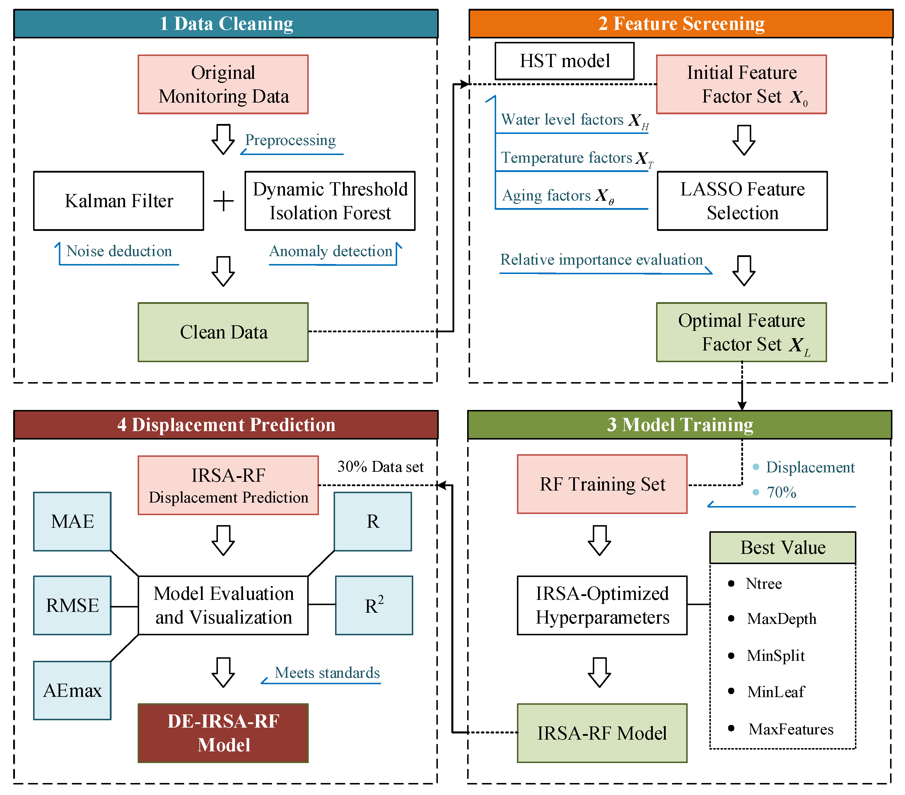 Deng, Z.; Wu, Q.; Huang, M. Two-Stage Dam Displacement Analysis Framework Based on Improved Isolation Forest and Metaheuristic-Optimized Random Forest. Buildings 2025, 15, 4467. https://doi.org/10.3390/buildings15244467