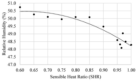 Additionally, Figure 3 illustrates how indoor relative humidity increases as the SHR decreases, further demonstrating the relationship between system performance and humidity level. Together, these results show the potential for energy savings when the system is operated at slightly higher indoor humidity levels without compromising comfort.