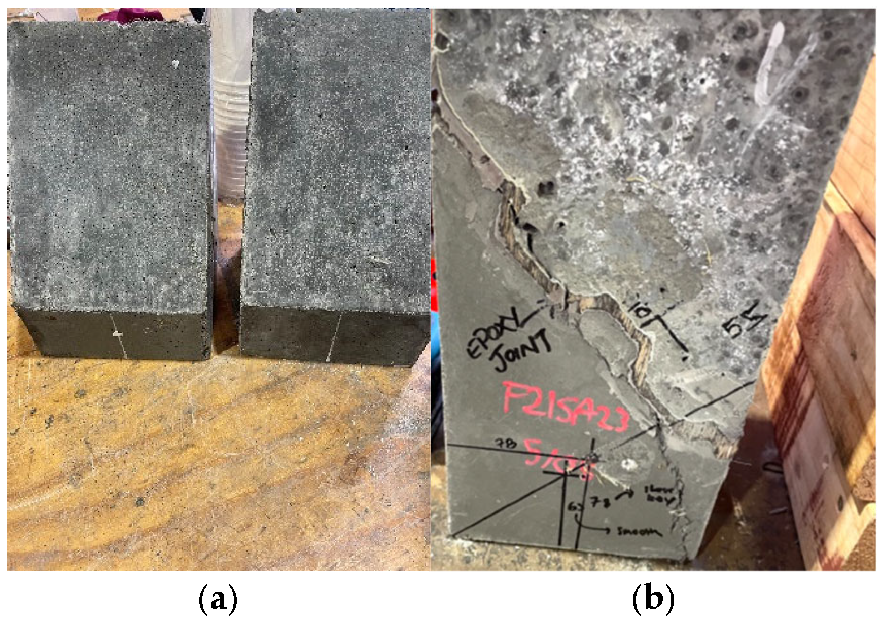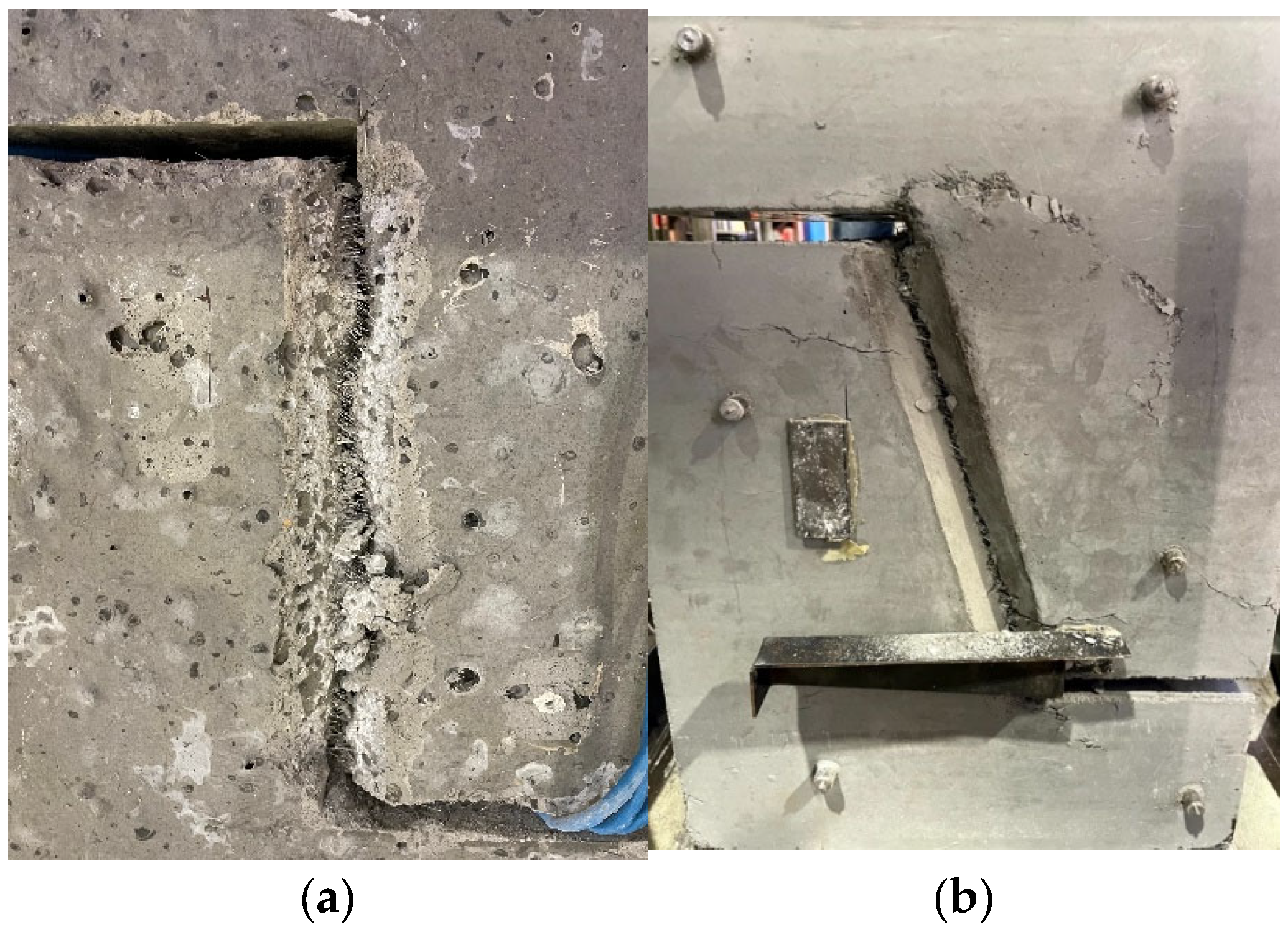 3.1. Slant Shear and Shear Key Tests Results