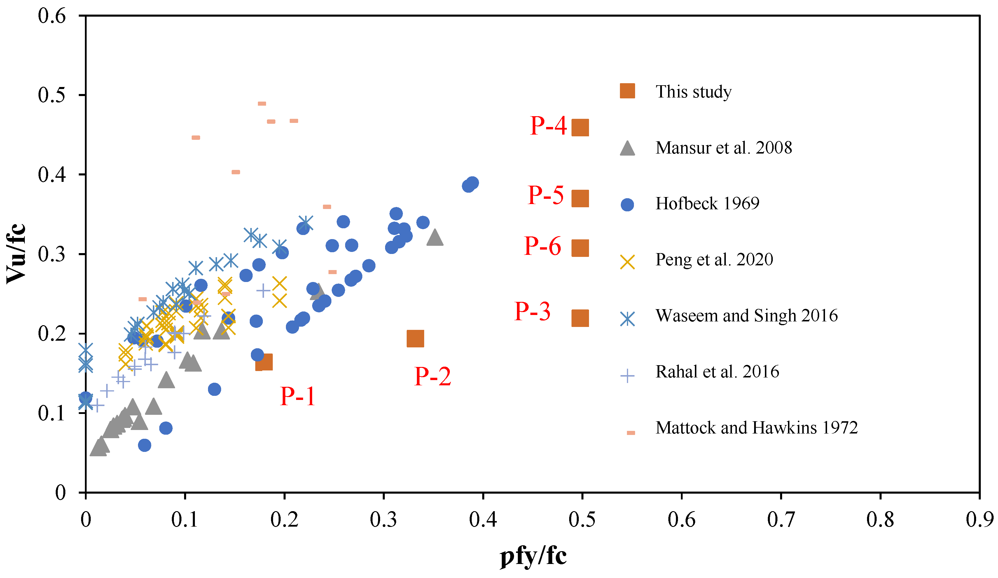 | Number of transverse rebars across the shear plane | 3 | 2 | 3 | 3 | 3 | 3 |