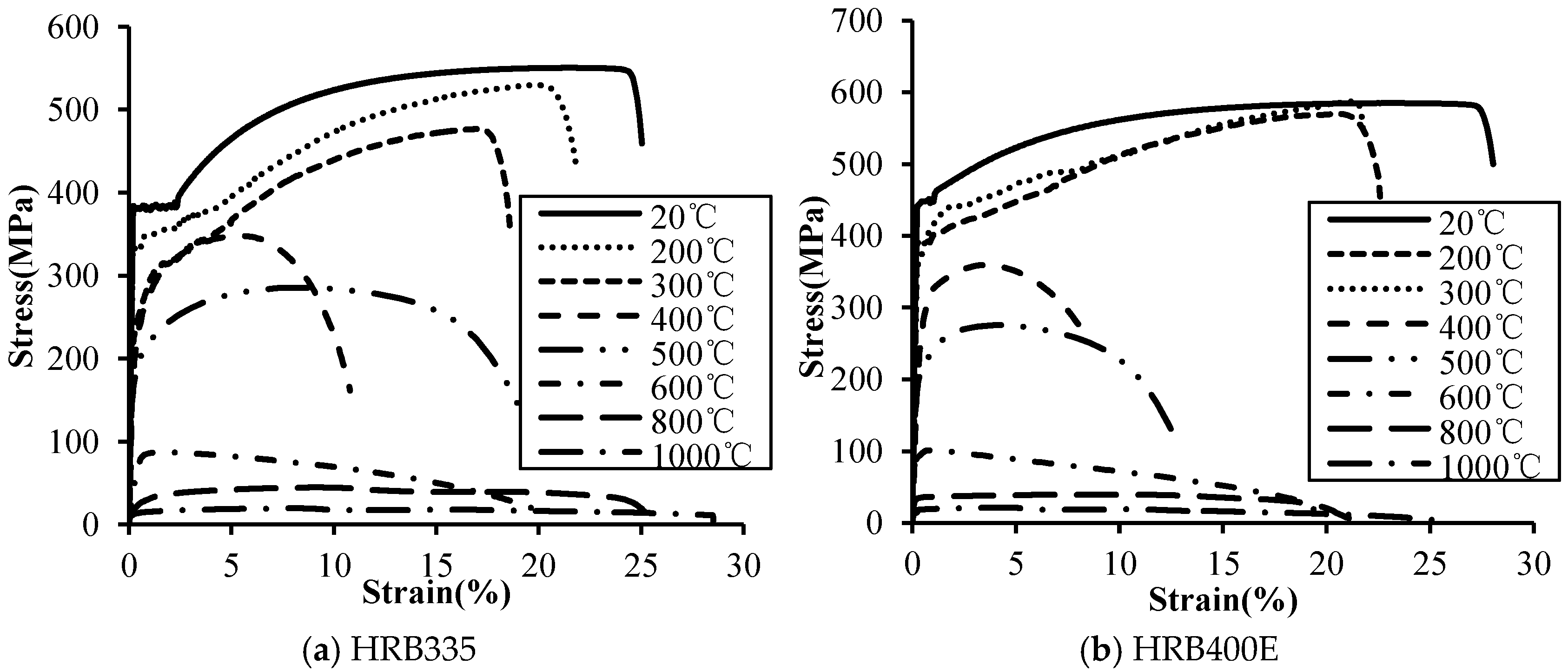 3. Stress–Strain Relationship Curves of Steel Reinforcement at Elevated Temperatures
