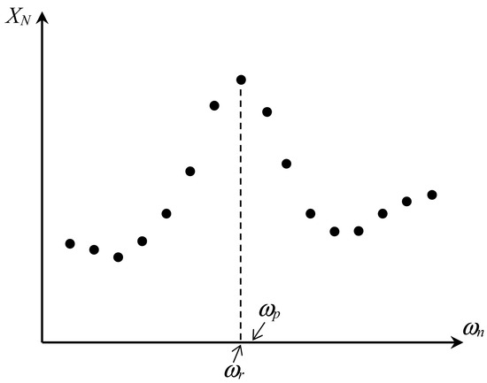 Next, the structural system resonant behavior will be studied under an important set of real and strong earthquakes. The significance of the set lies in that the moment magnitudes are larger than 6.5, that the records are near-field, and in that it is an international set, which is shown in Table 1. As explained in the Introduction, resonance is analyzed focusing on the global deformation or the last-story displacement relative to ground, xN, as this is a single variable most related to mechanical failure, which is the main consequence or concern under resonance, either in machinery or structures. The time-history peak value of this overall drift, XN, will be plotted against the fundamental natural frequency of the structure, for each earthquake. This will result in a resonant graph similar to Figure 2, which is illustrative, if indeed (1) seismic structural resonance, centered at ωr, is a fact or a real possibility in near-field instances, and if (2) near-field seismic records do have a single predominant frequency, which is a premise of this research based on recent results [15]. In fact, the plot can also exhibit that predominant frequency of ground motion, ωp, as obtained in that recent work, to highlight the match between ωp and the encountered or observed resonant frequency ωr. This coincidence is or would be, of course, one main result of this research as it will corroborate the previous results [15]. Again, the figure in this Method section is illustrative; ωp could be lower than ωr, and even in the perfect case (which in nature there are some, as shown in Section 3), ωr can be equal to ωp.