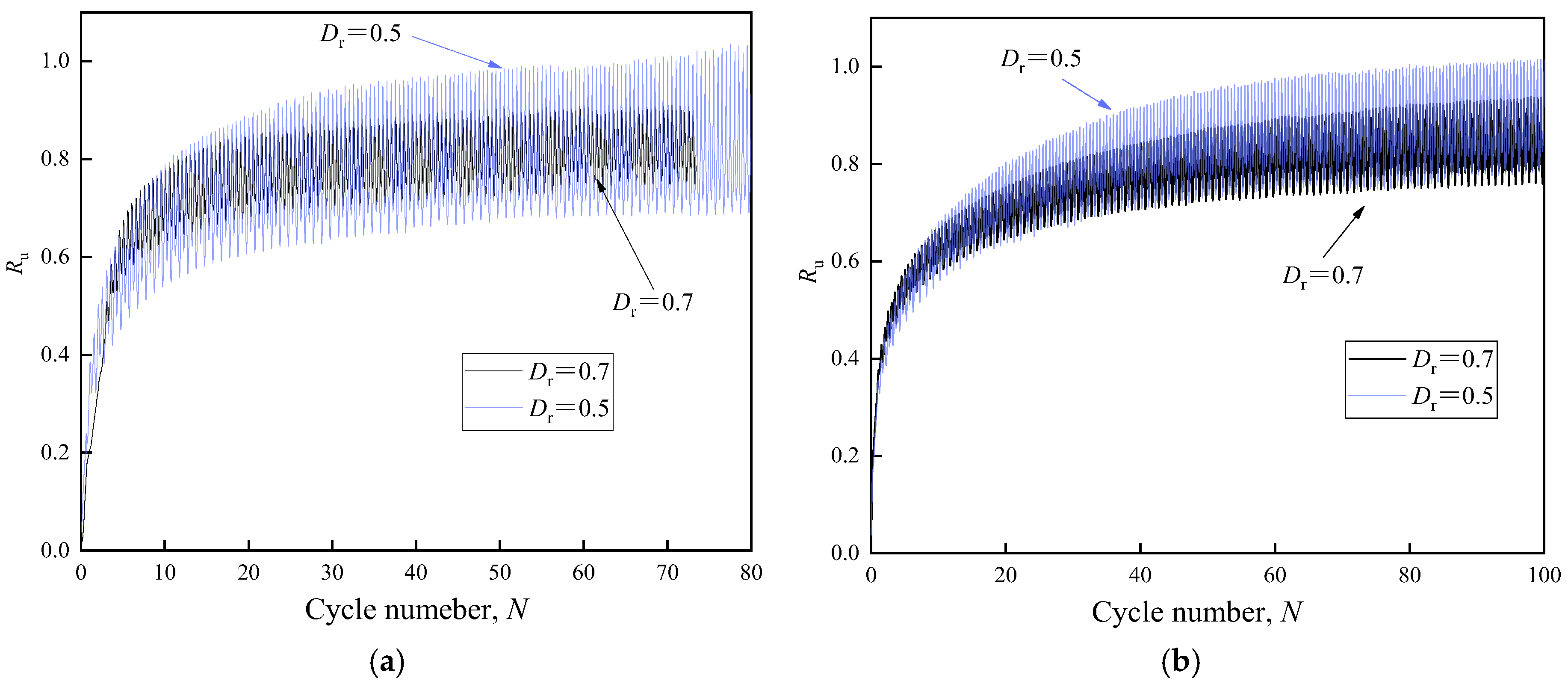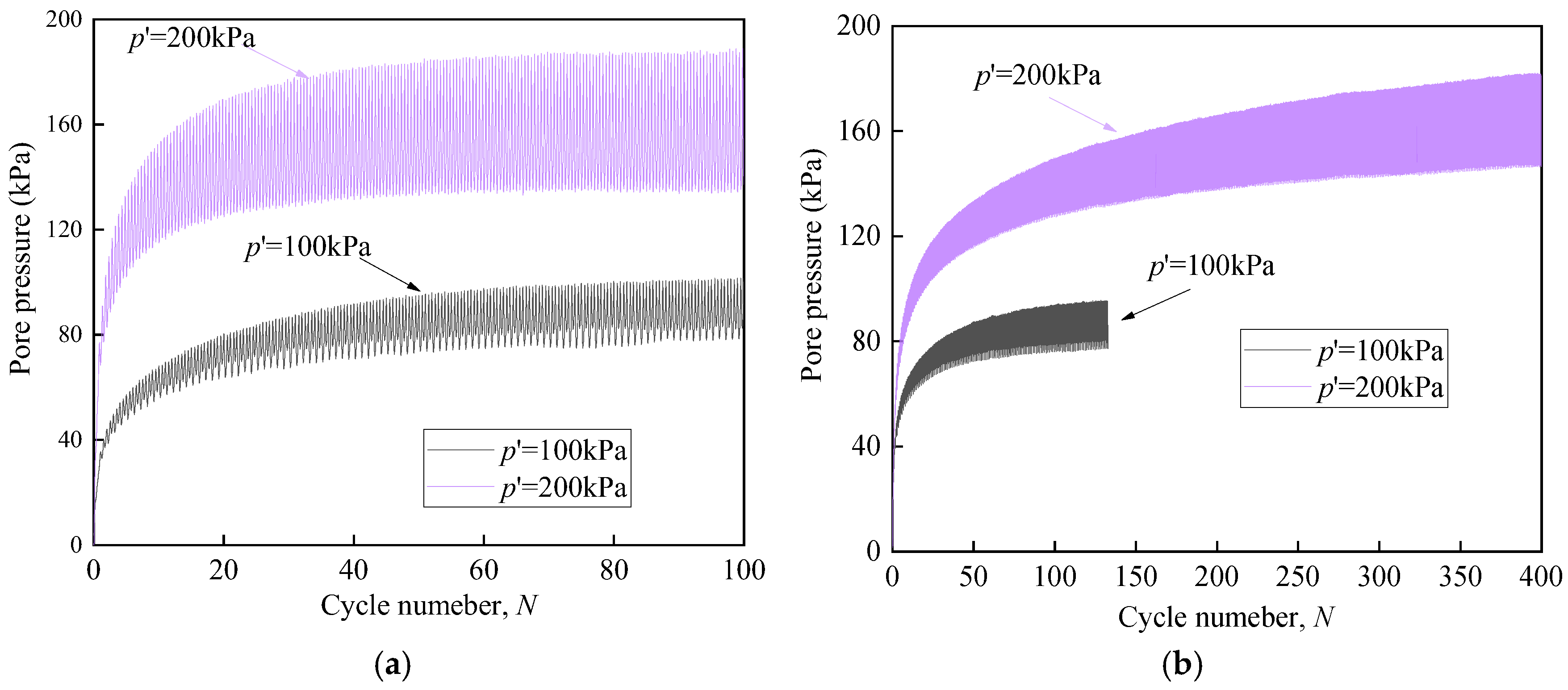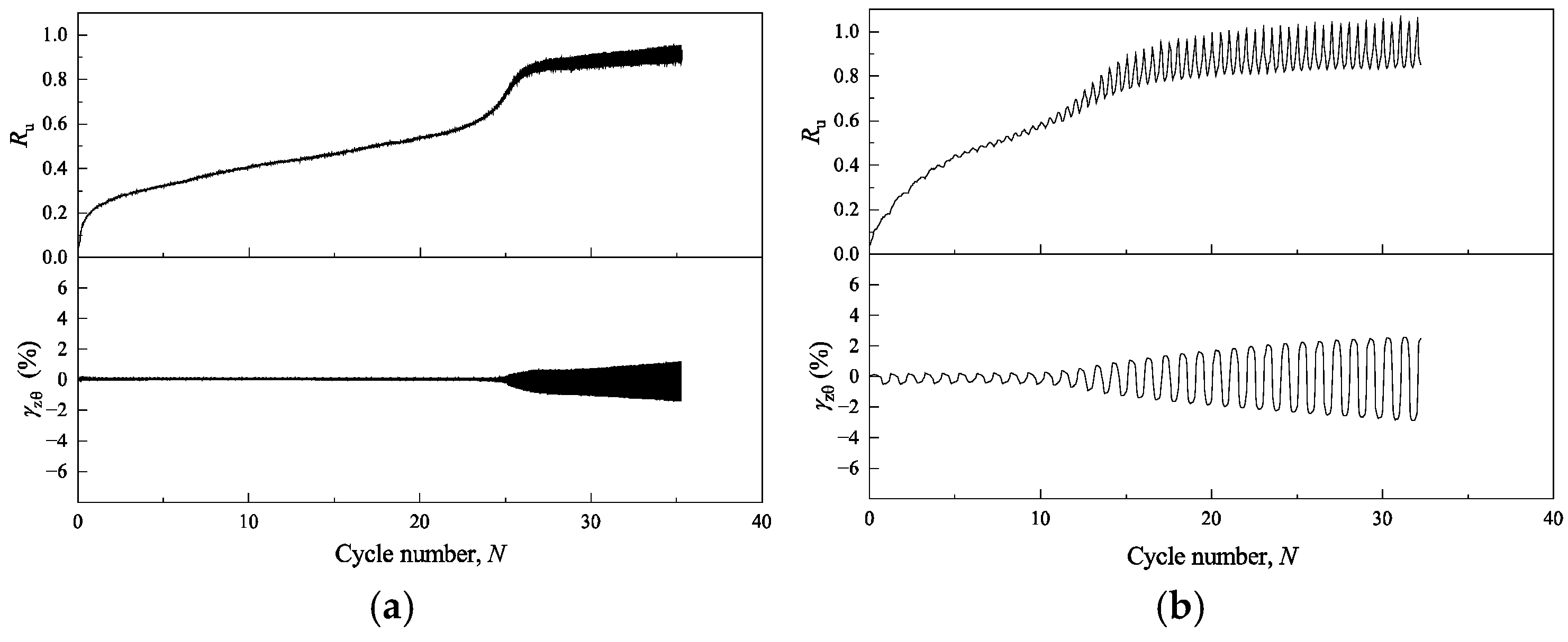 - Pokhrel, A.; Chiaro, G. Pore Water Pressure Generation and Energy Dissipation Characteristics of Sand–Gravel Mixtures Subjected to Cyclic Loading. Geotechnics 2024, 4, 1282–1303. [Google Scholar] [CrossRef]