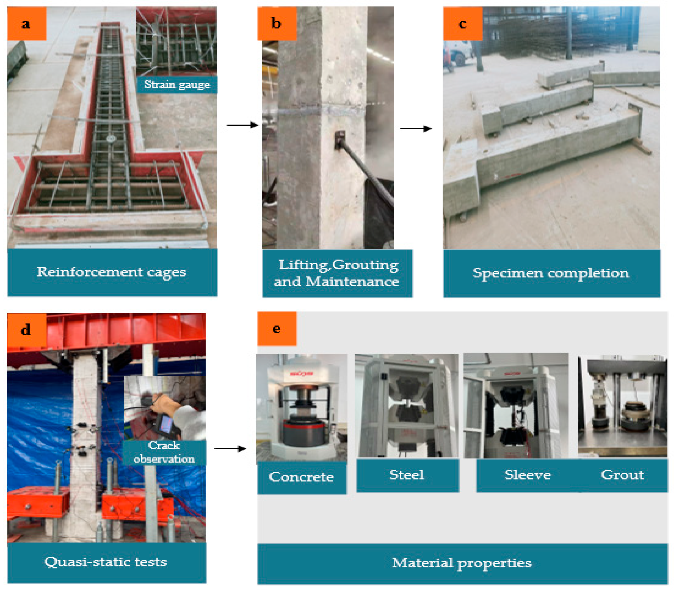 - Zeng, Z.X.; Yu, W.M.; Luo, Y.; Wu, C.; Liu, X. Experimental study on seismic behavior of prefabricated concrete circular section column with grouted sleeve. J. Build. Eng. 2022, 46, 103693. [Google Scholar] [CrossRef]
