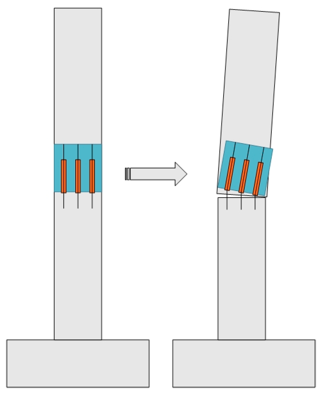 - The cash-in-place column and the half-height prefabricated column exhibited flexural failure characteristics. Smaller crack widths and less localized damage under the same displacement were the results of the grouted-sleeve connection’s increased stiffness. No observable bond–slip failure occurred in the sleeve connection.