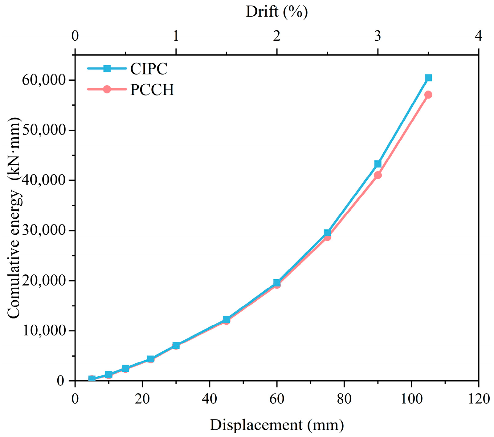 | Energy dissipation (kN·mm) | 60,462.09 | 57,069.17 |