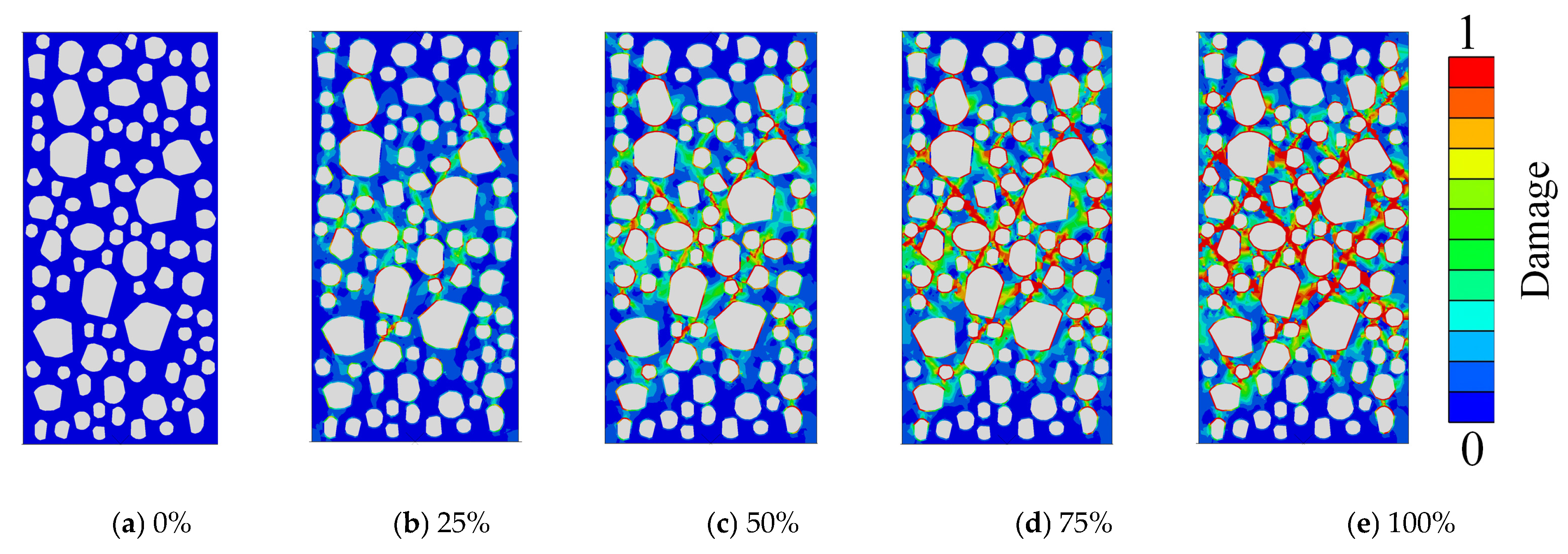 3.2. Mesoscale Model Simulation Results of Steel Slag Coarse Aggregate Concrete