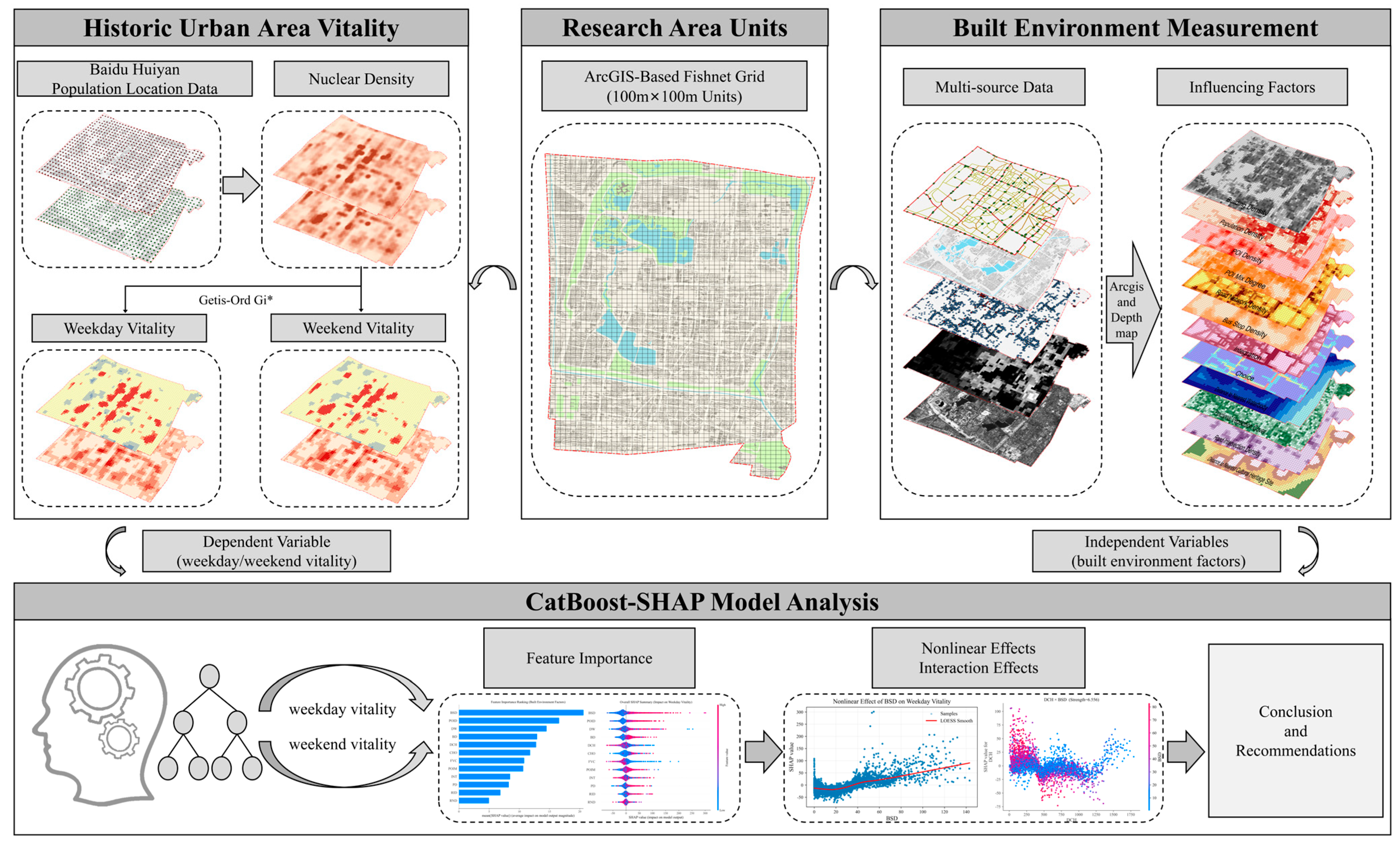 APA StyleZhang, J., & Shen, Y. (2025). Model Modeling the Spatiotemporal Vitality of a Historic Urban Area: The CatBoost-SHAP Analysis of Built Environment Effects in Kaifeng. Buildings, 15(24), 4499. https://doi.org/10.3390/buildings15244499