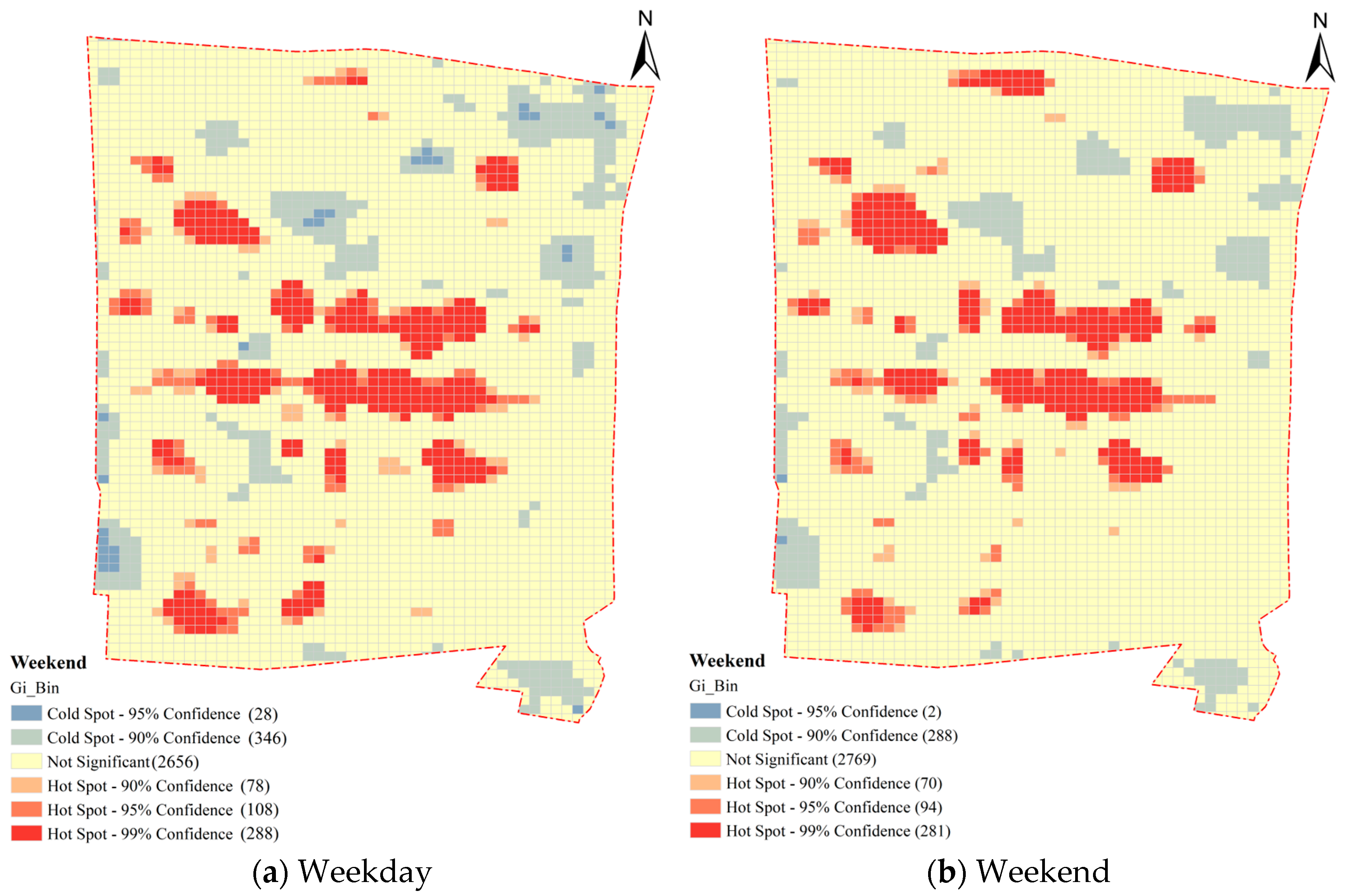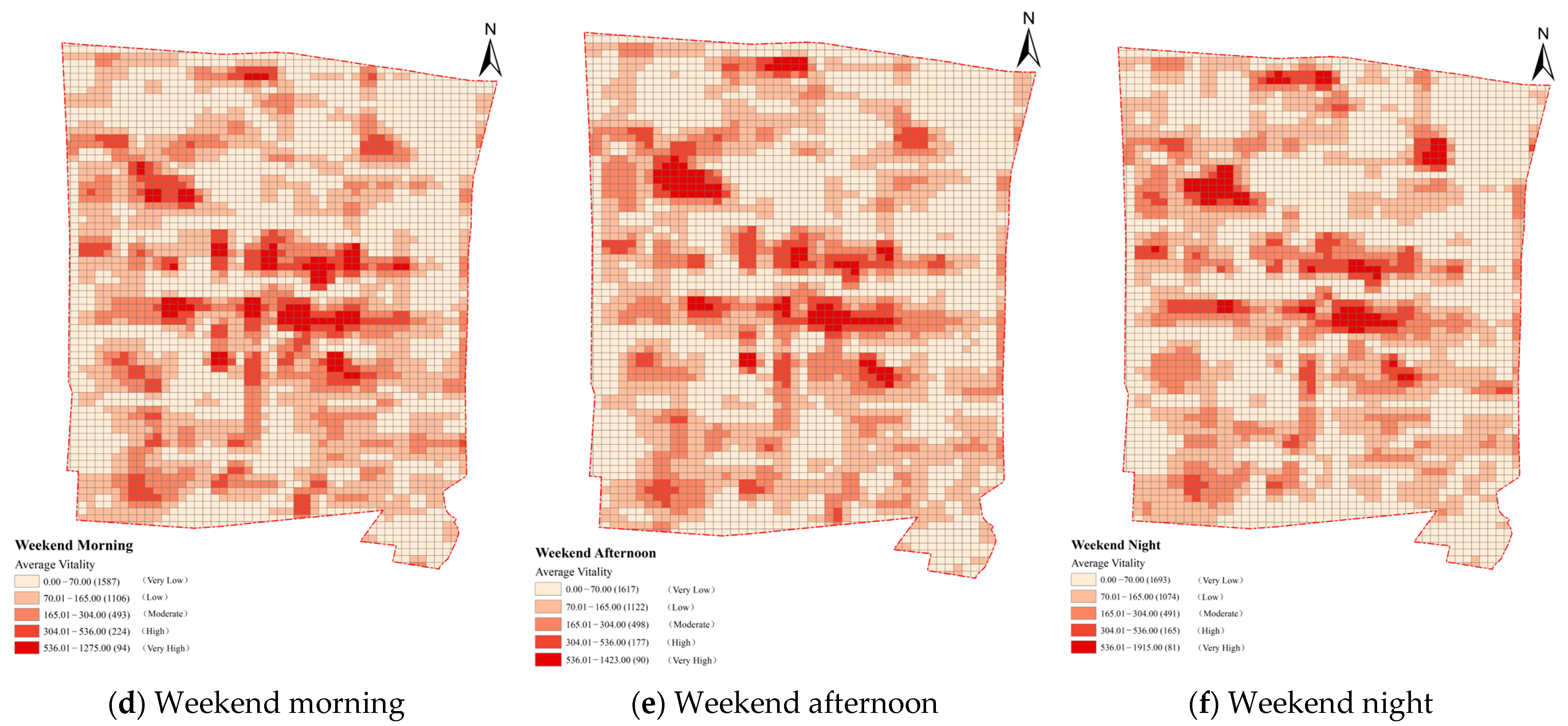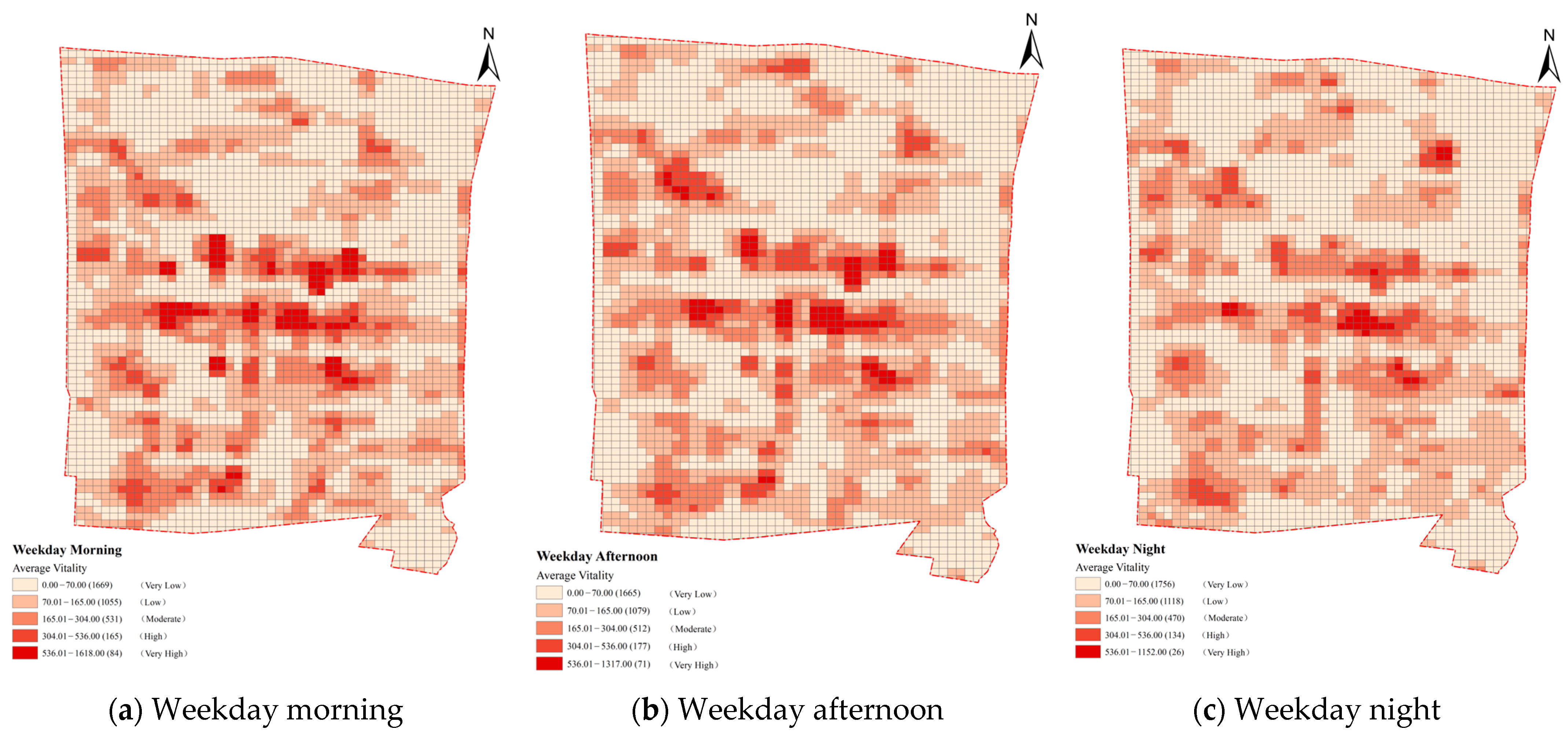5.1.1. Spatial Patterns of Vitality in the Historic Urban Area