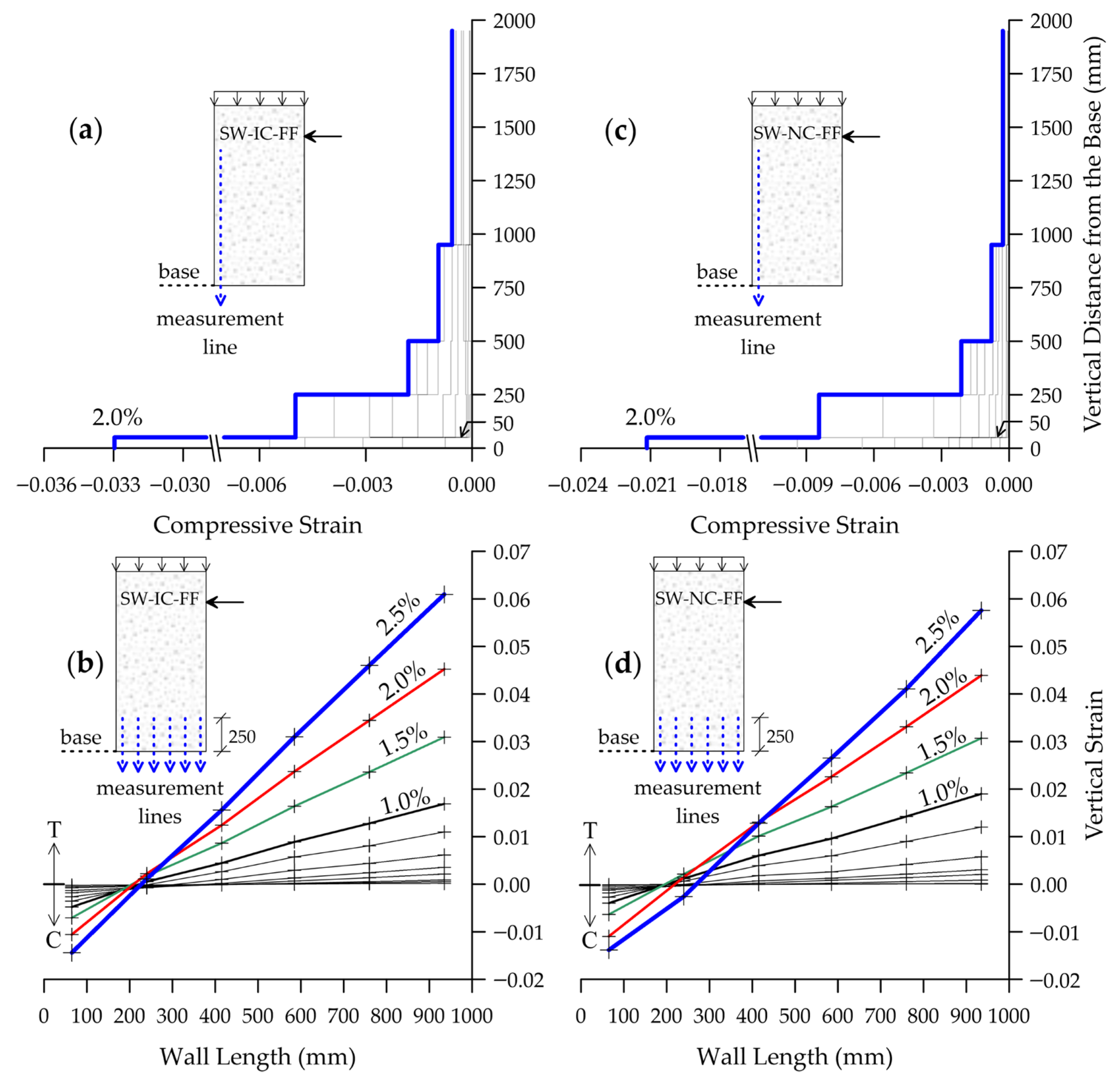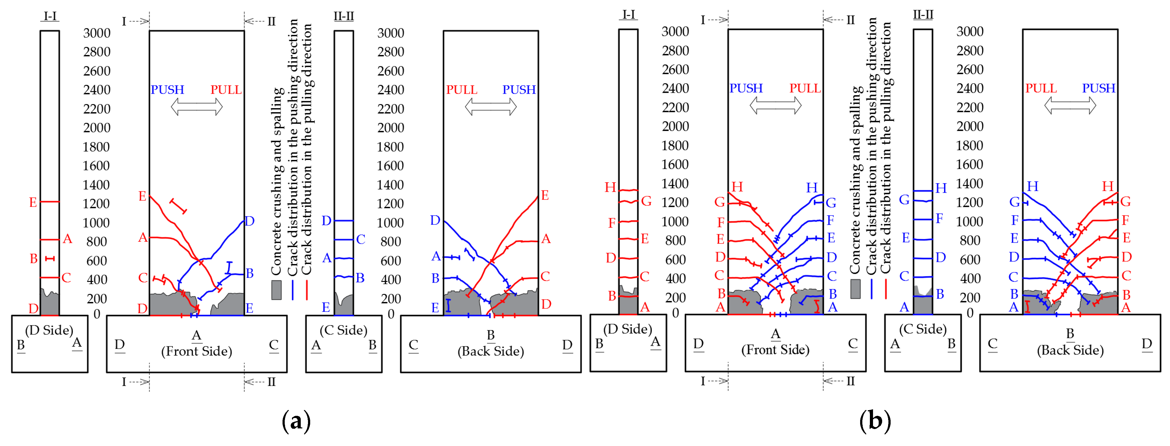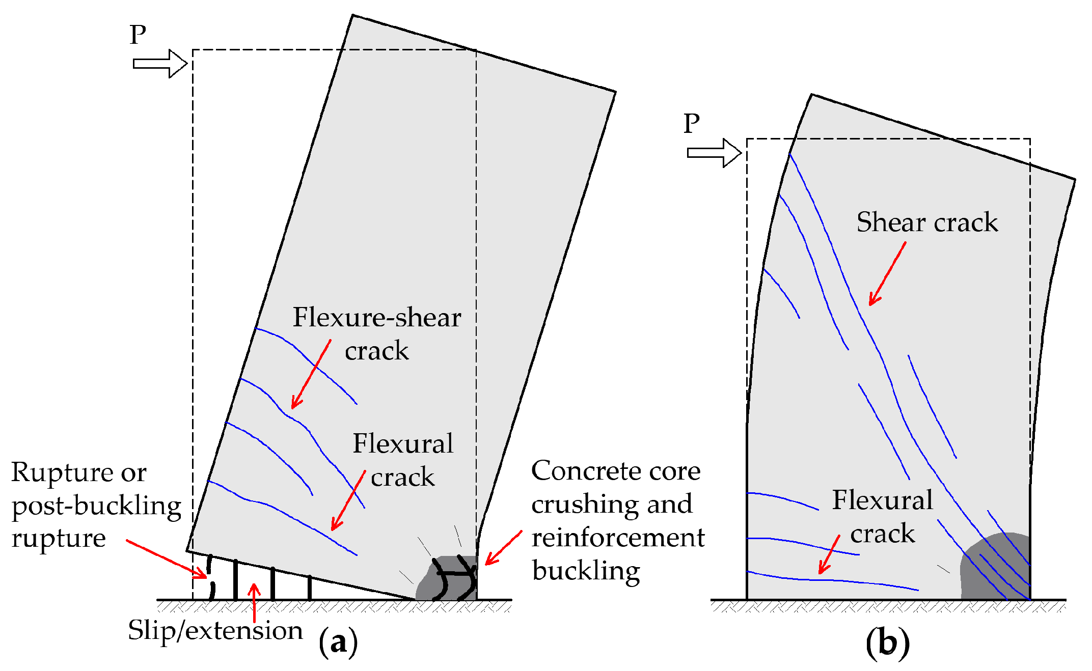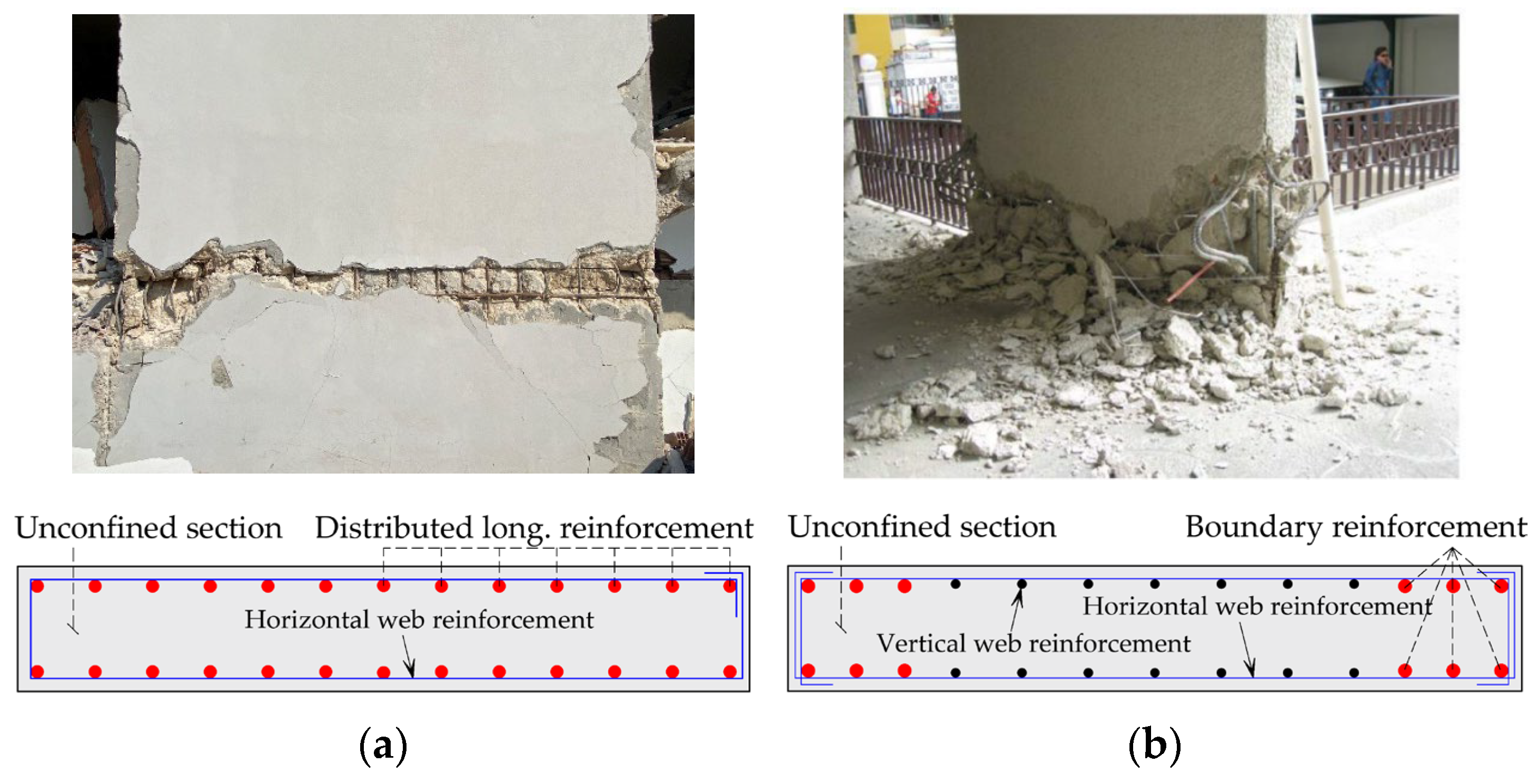 - Tasnimi, A. Strength and Deformation of Mid-Rise Shear Walls under Load Reversal. Eng. Struct. 2000, 22, 311–322. [Google Scholar] [CrossRef]