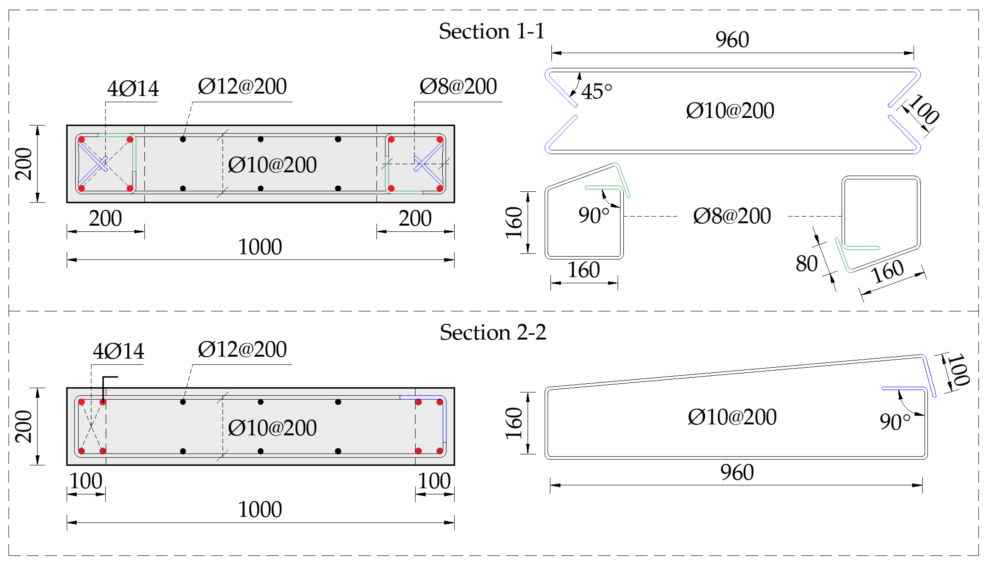 - Park, R.; Paulay, T. Reinforced Concrete Structures; Wiley: New York, NY, USA, 1975; ISBN 9780471659174. [Google Scholar]