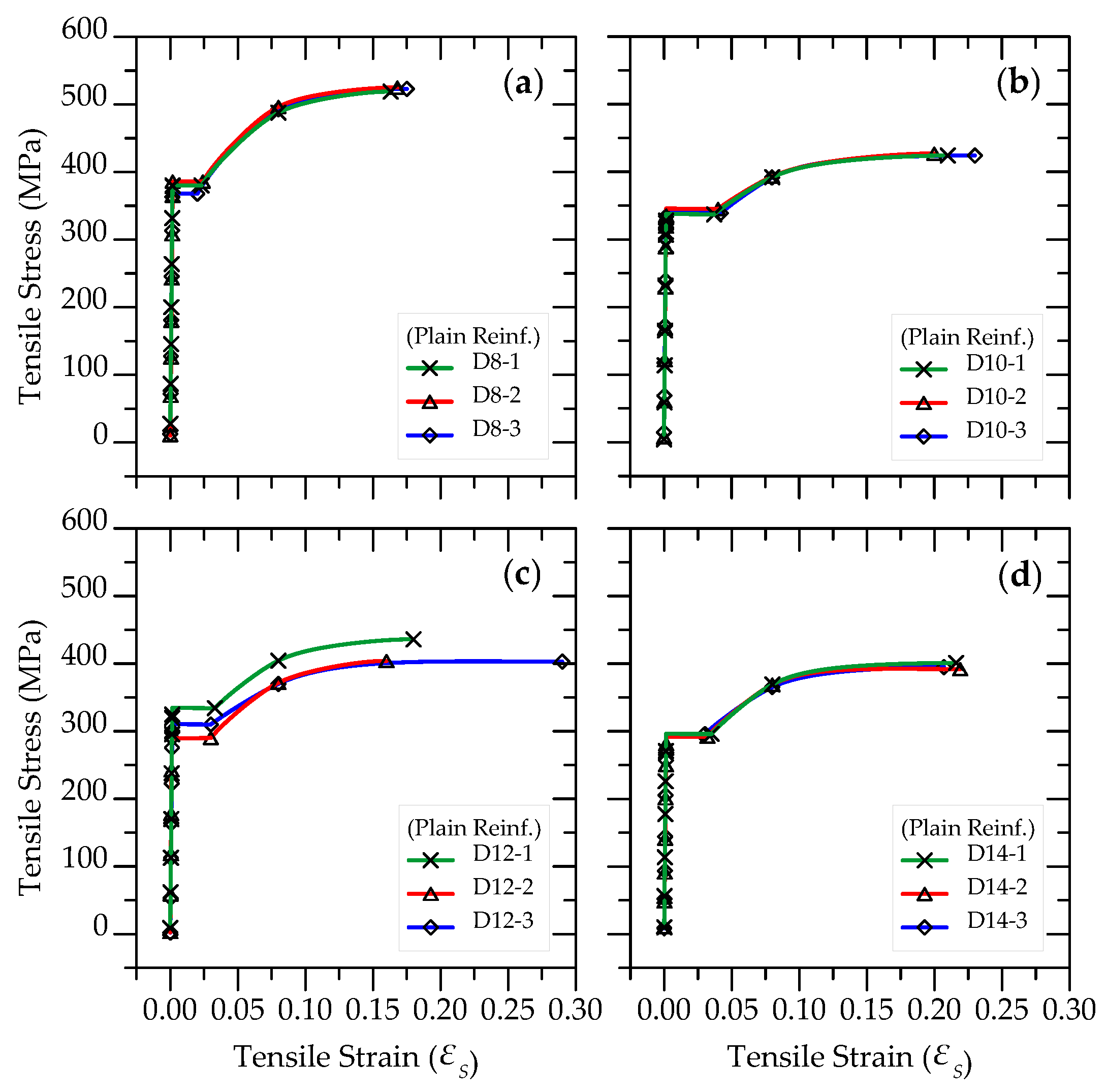 | Reinf. Bar | (GPa) | (MPa) | (%) | (%) | (MPa) | (%) | (%) |
