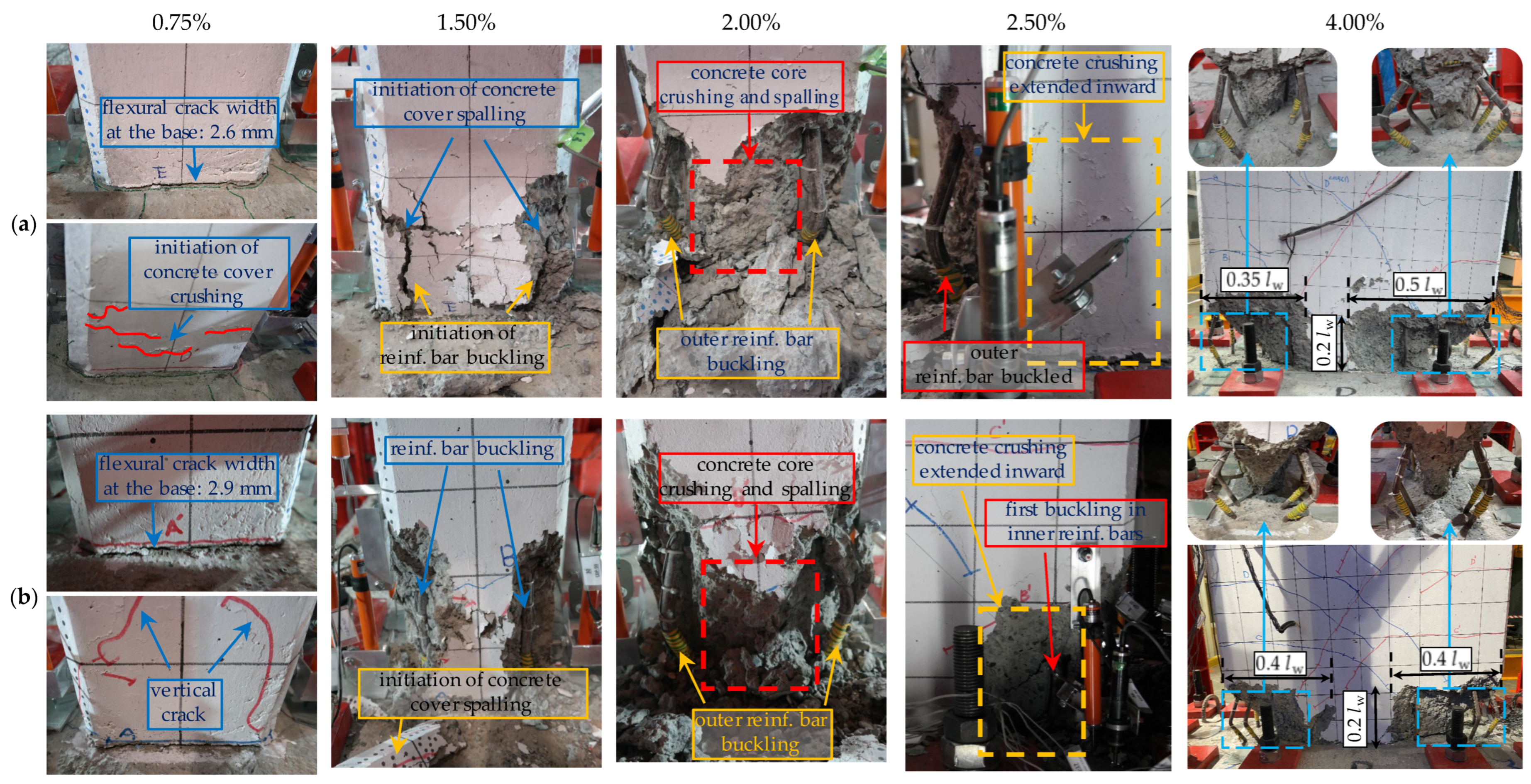 - Escolano-Margarit, D.; Klenke, A.; Pujol, S.; Benavent-Climent, A. Failure Mechanism of Reinforced Concrete Structural Walls with and without Confinement. In Proceedings of the 15th World Conference on Earthquake Engineering, Lisboa, Portugal, 24–28 September 2012. [Google Scholar]