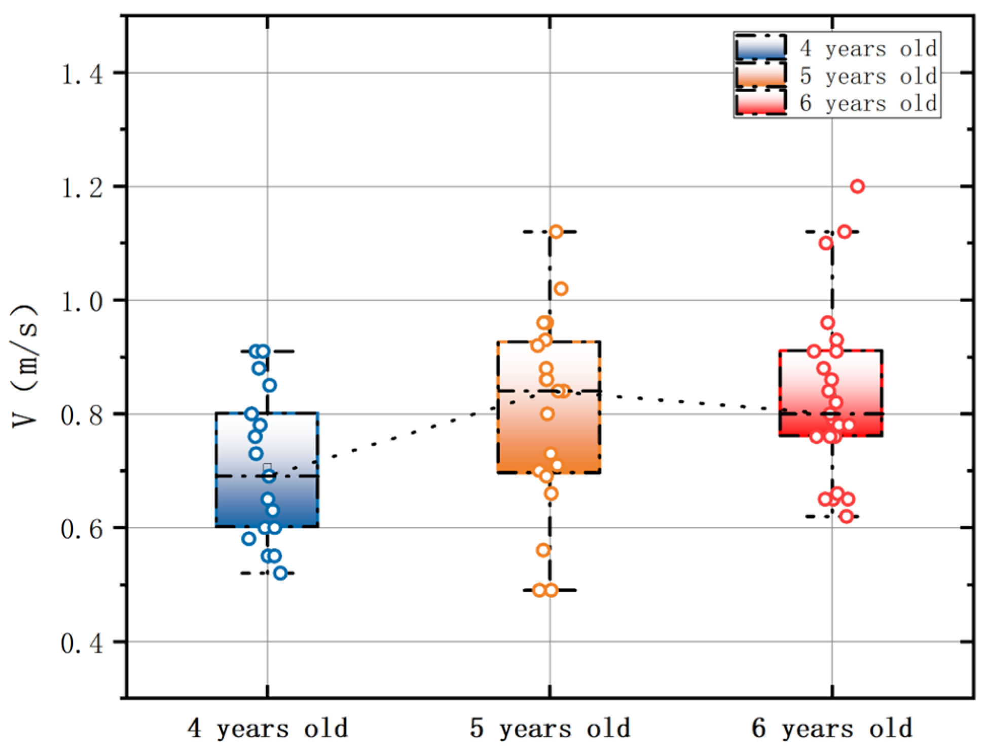 31] further observed that young children’s upward movement speed averaged 0.4 m/s, whereas their downward movement speed reached 0.52 m/s. Similarly, Yeo and He [