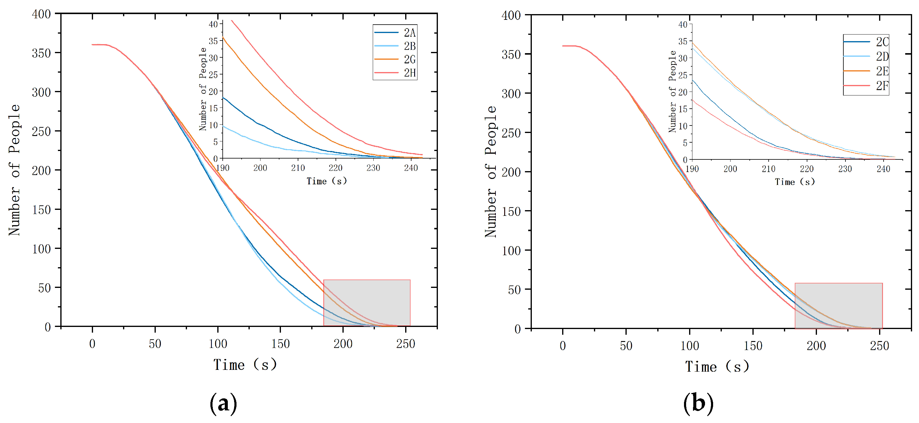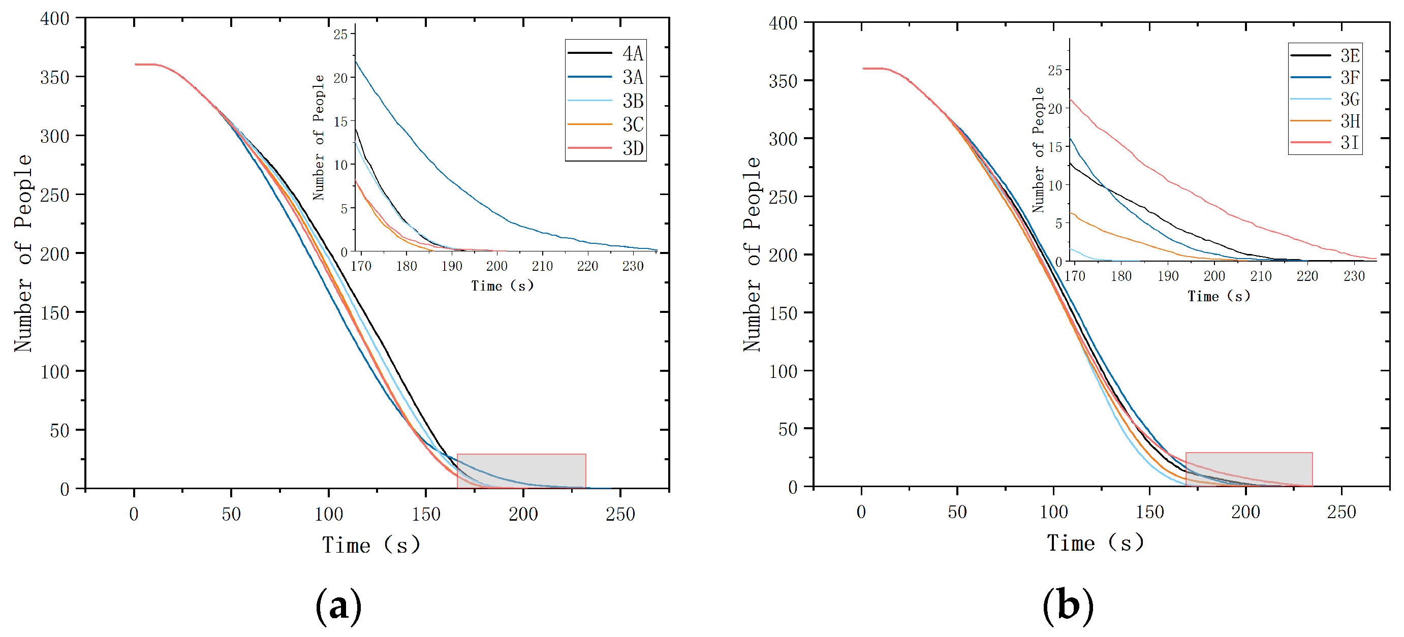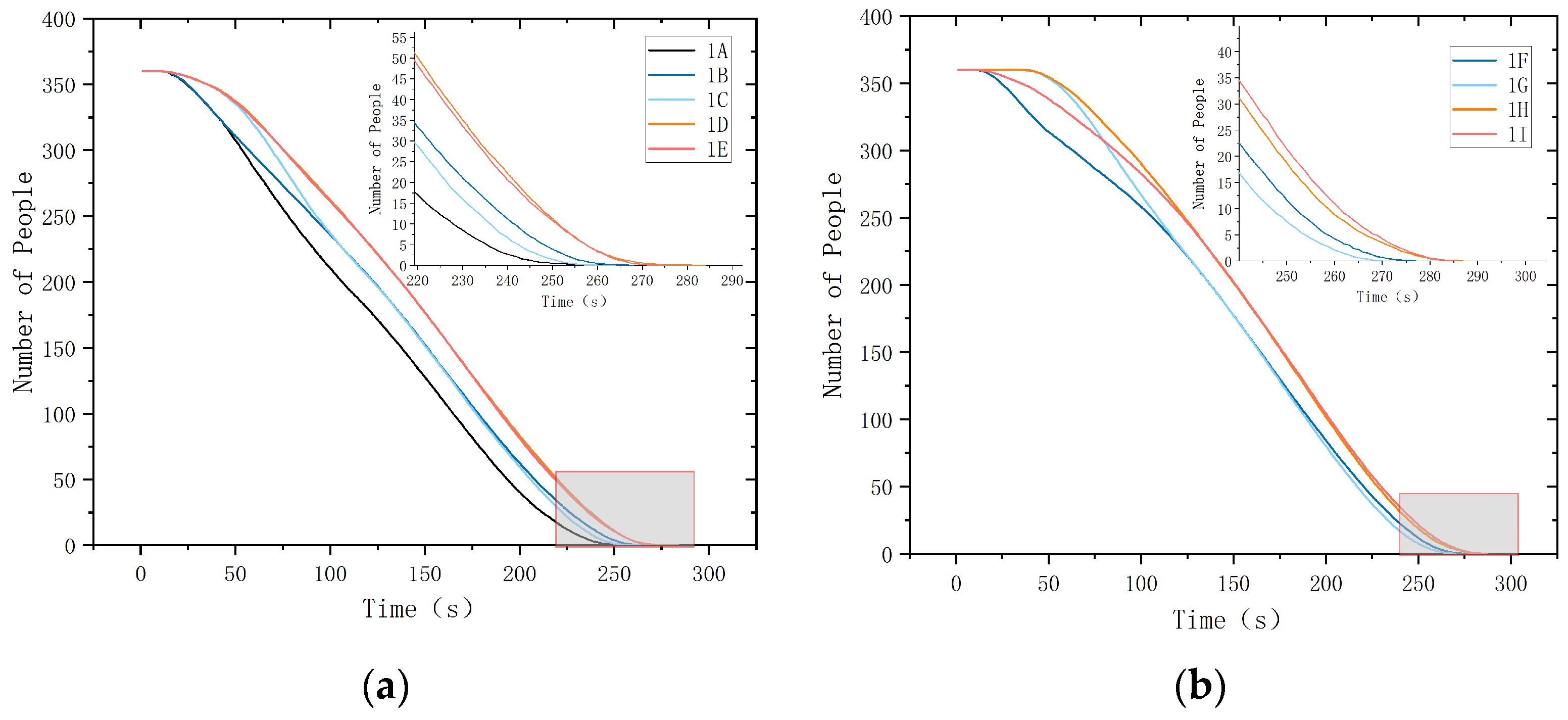 4.4. Statistical Results of Bidirectional Evacuation Times for First-Floor Classes