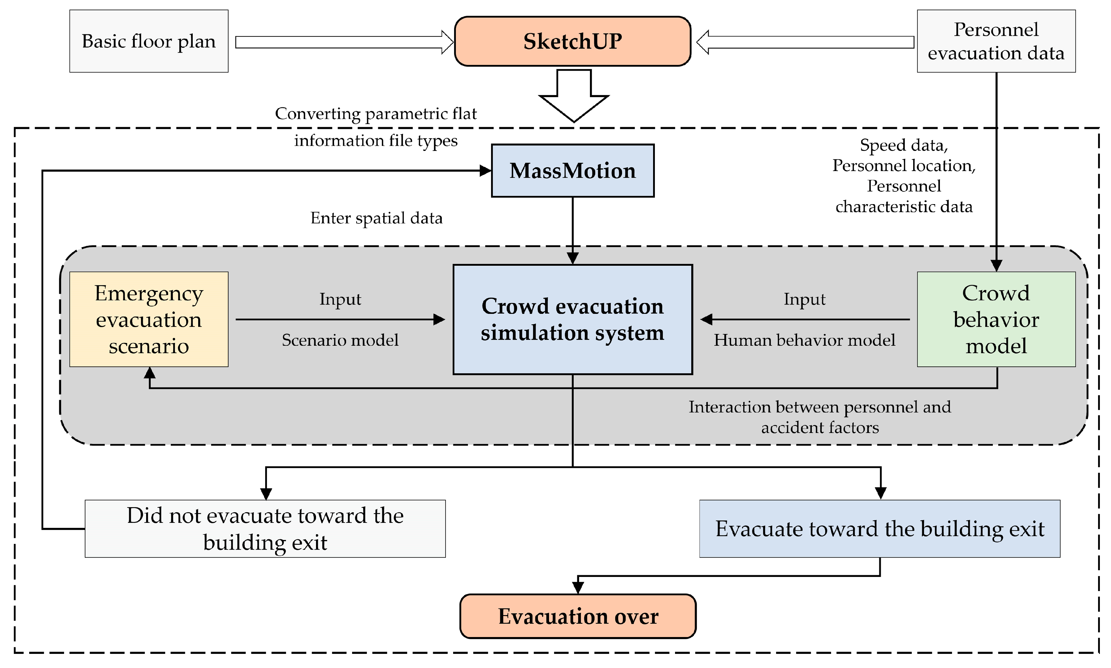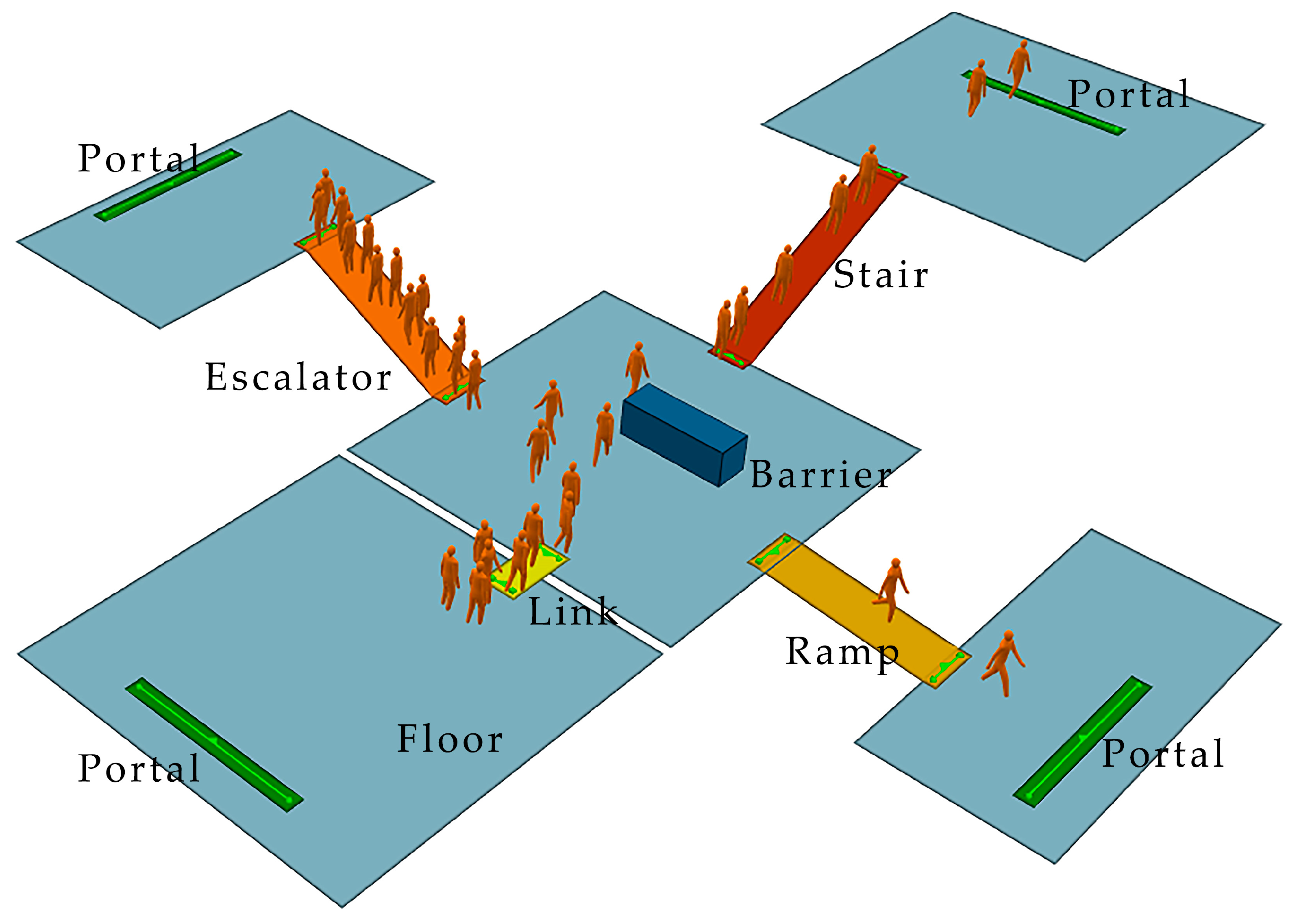 - Li, Z.; Huang, H.; Li, N.; Chu, M.L.; Law, K. An Agent-Based Simulator for Indoor Crowd Evacuation Considering Fire Impacts. Autom. Constr. 2020, 120, 103395. [Google Scholar] [CrossRef]