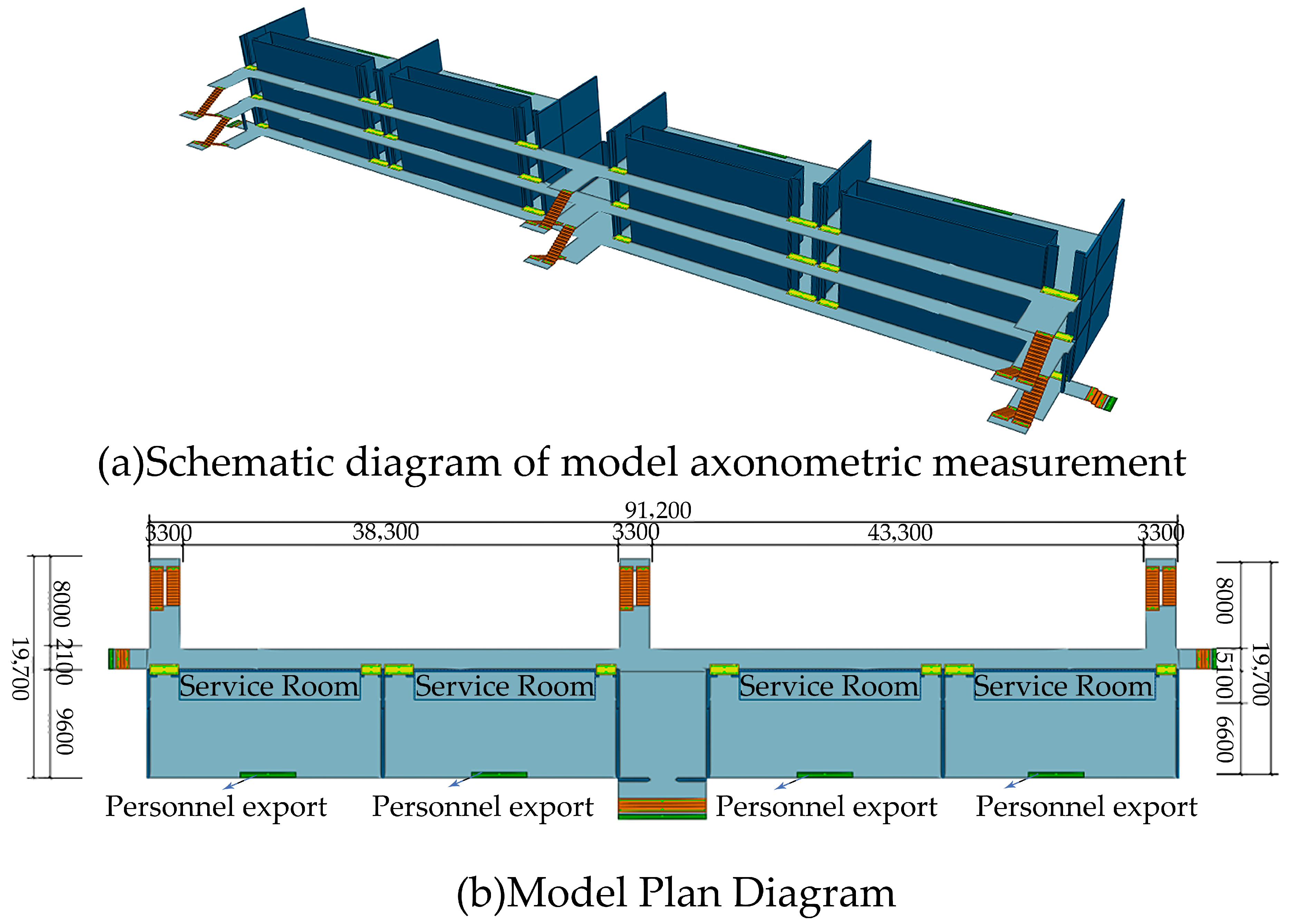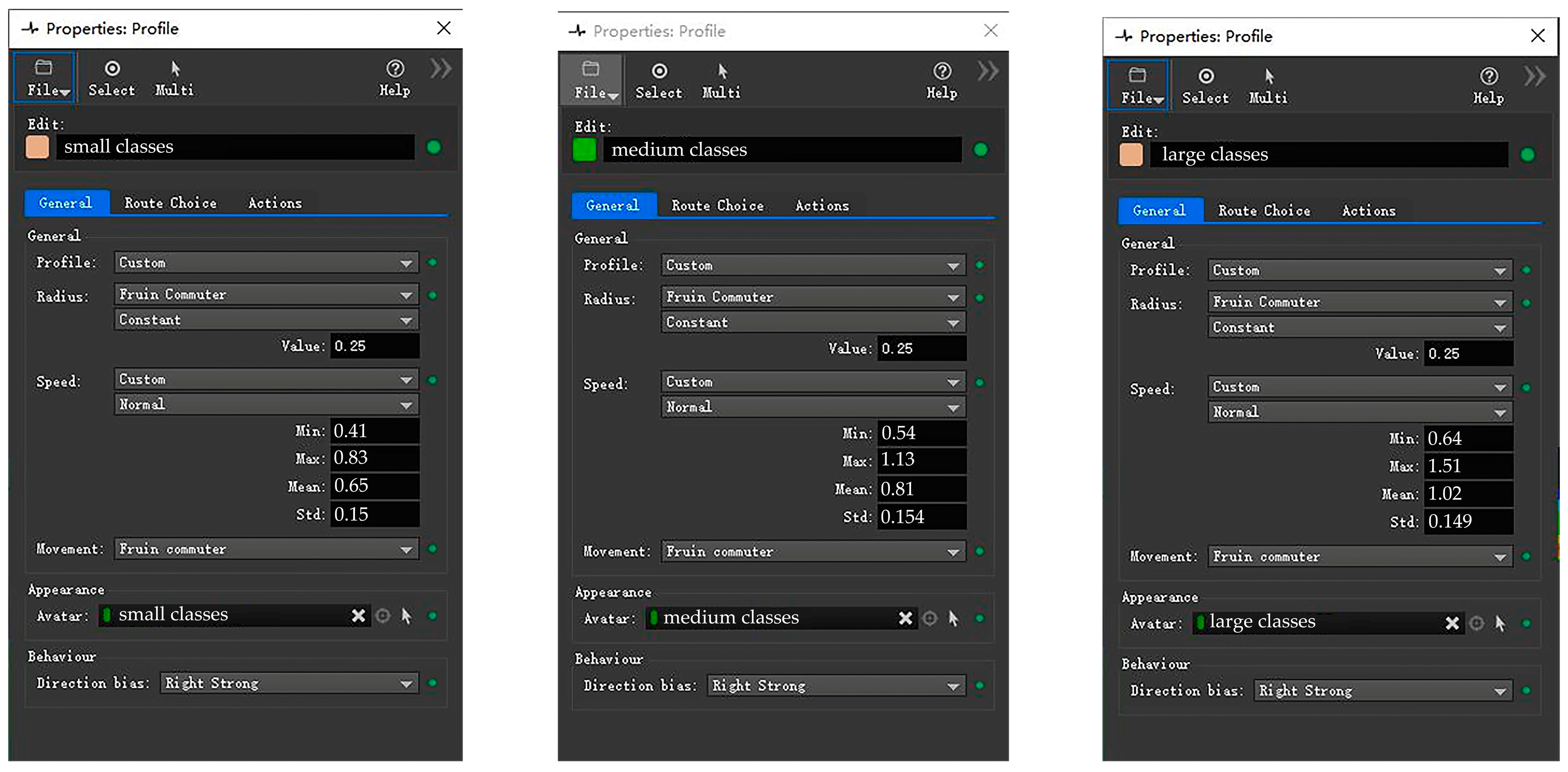- Model construction: Based on the collected data, an evacuation simulation model based on MassMotion is established. The model incorporates children’s behavioral characteristics and individual evacuation parameters throughout its development to realistically replicate emergency evacuation scenarios.