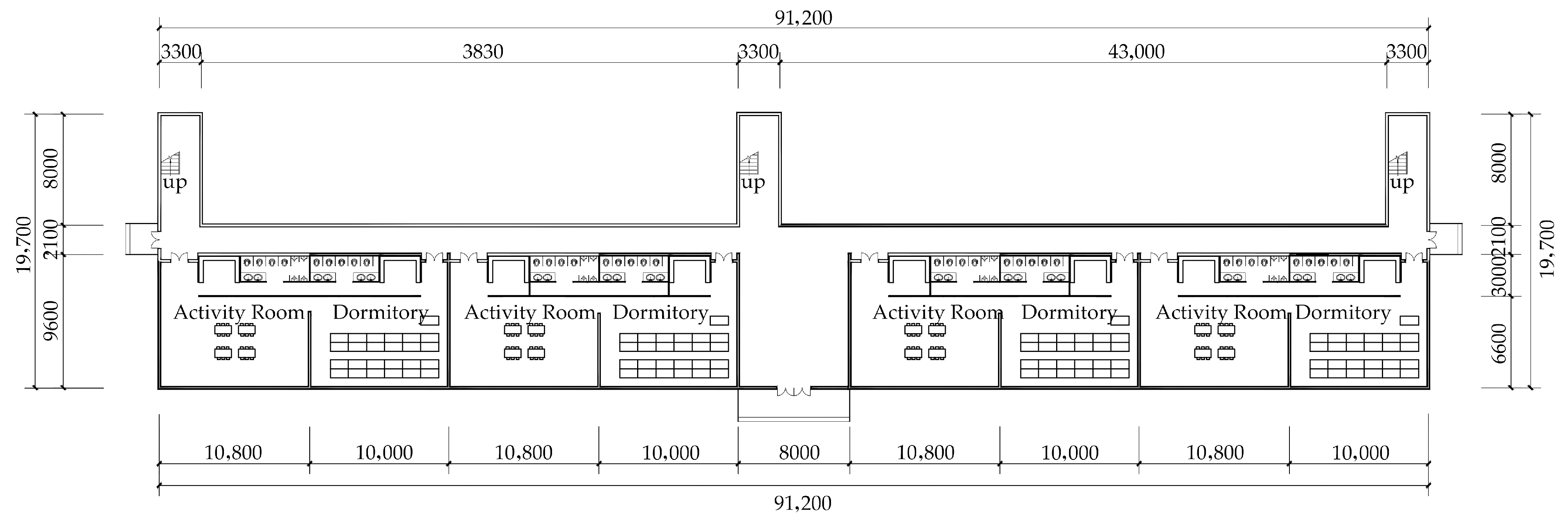 - In the form of separating the activity room from the dormitory, setting up an independent and direct exit for the activity room and optimizing the position of the connection exit between it and the dormitory can build a three-dimensional and clear evacuation path network, thereby maximizing the safety potential of this mode and achieving systematic optimization of evacuation efficiency.