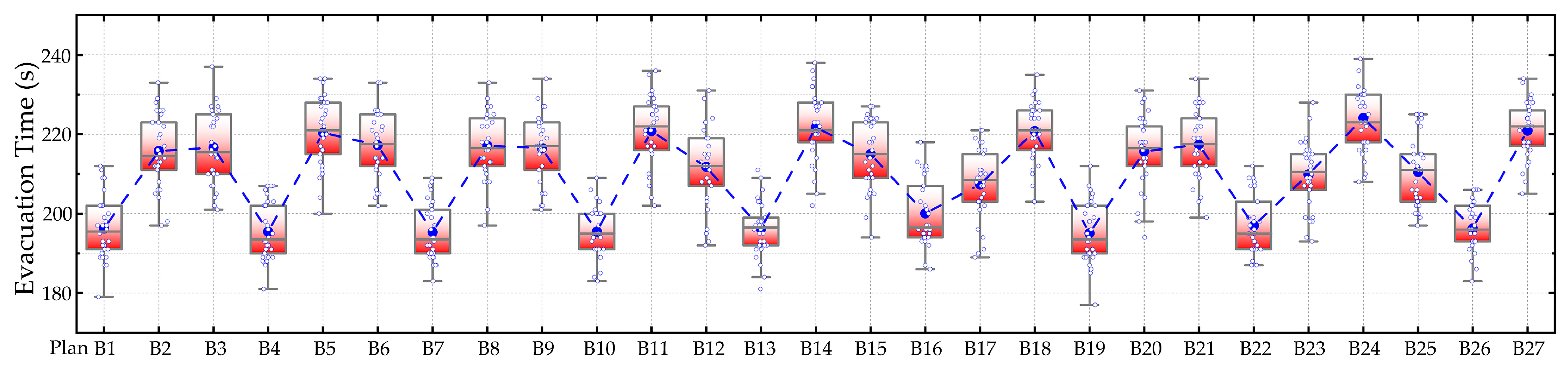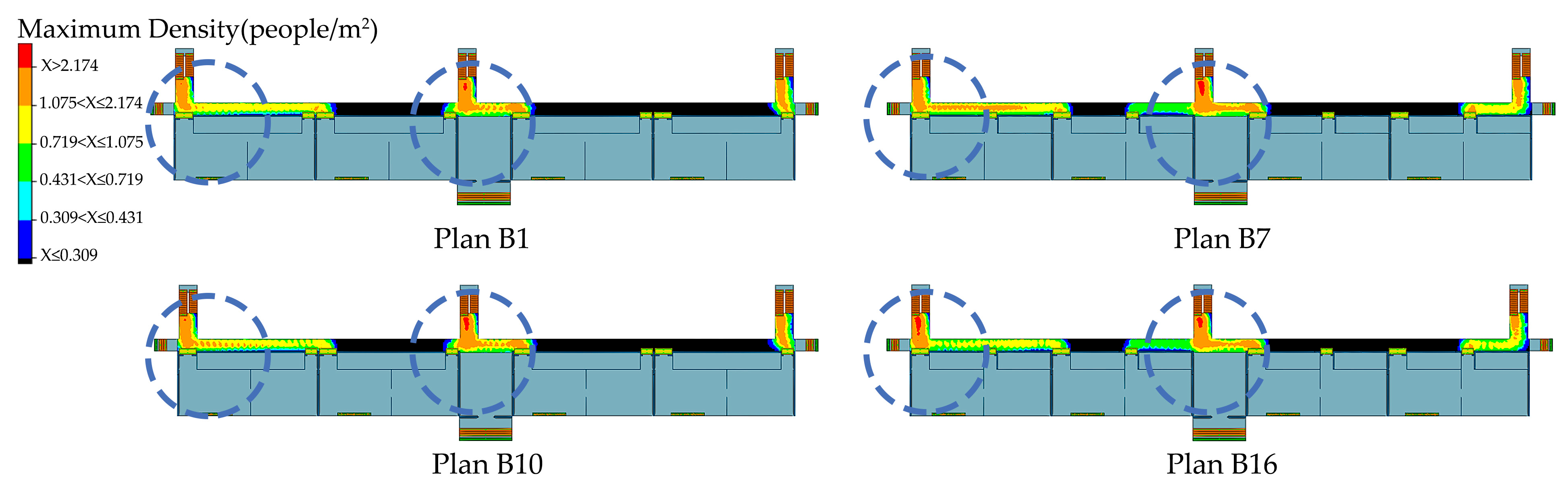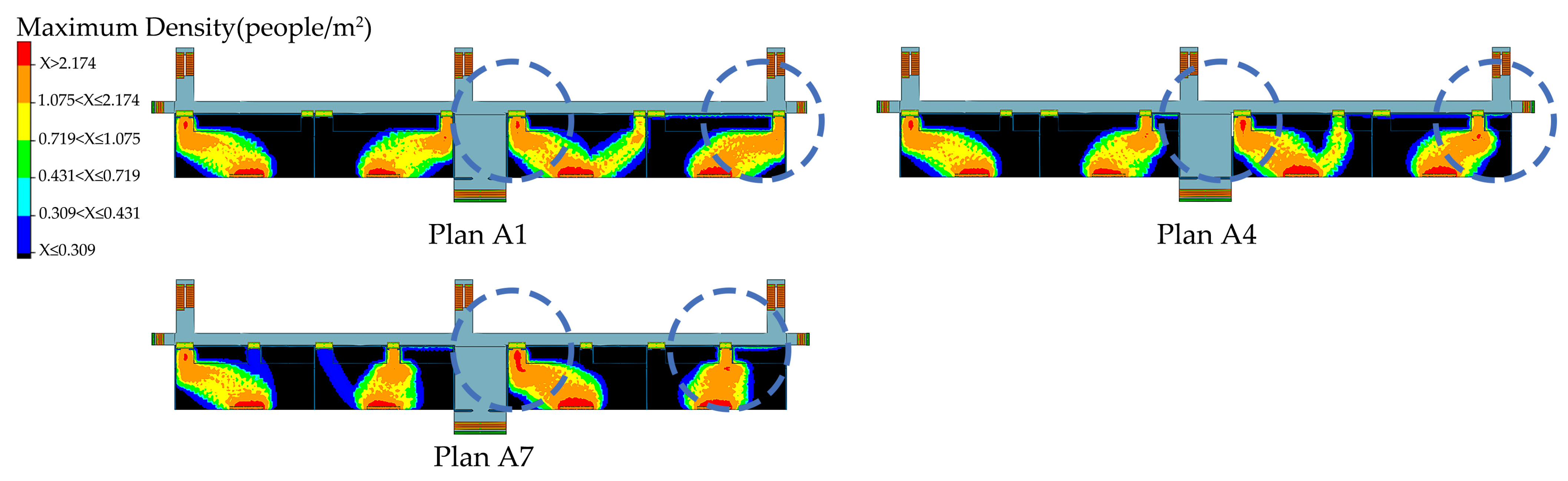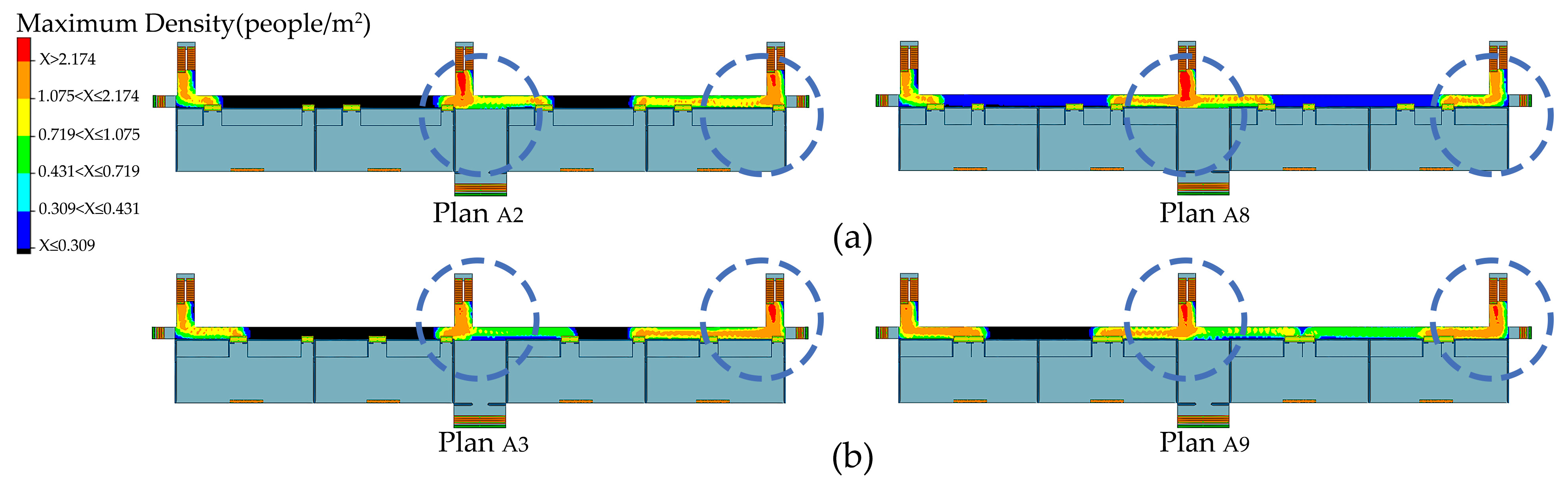 4.1.2. Impact of Separate Exits for Activity Rooms and Dormitories on Evacuation