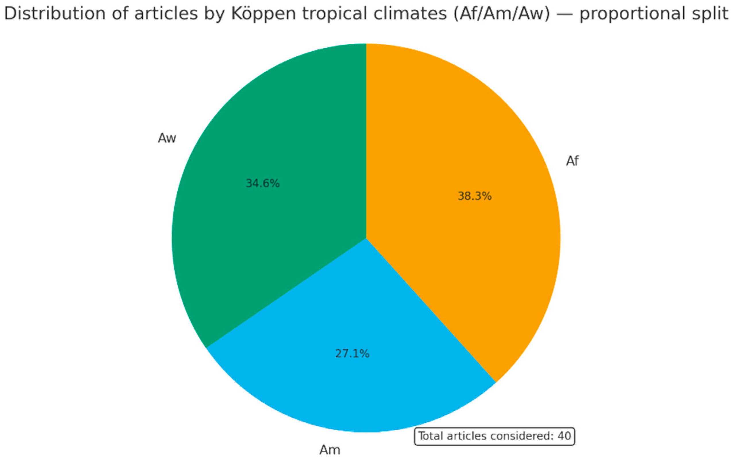 - RQ1: What is the current state of the literature on IAQ in homes located in Am, Af, and Aw regions according to the Koppen climate classification?