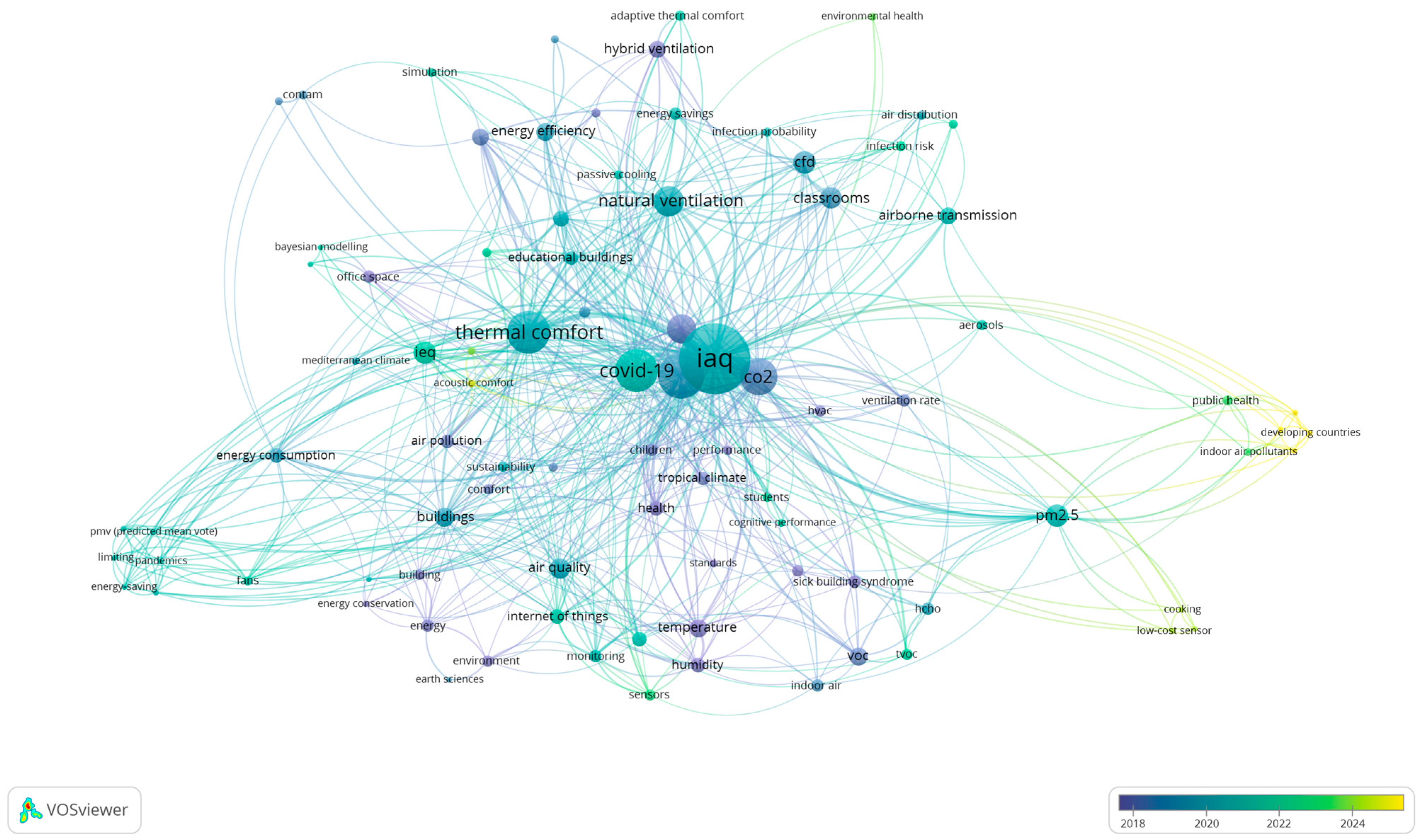 | Relevant Parameters related to IAQ | IAQ OR air quality OR Indoor Air Quality OR air pollution OR IEQ OR indoor environmental quality OR airborne pollutants OR carbon dioxide |