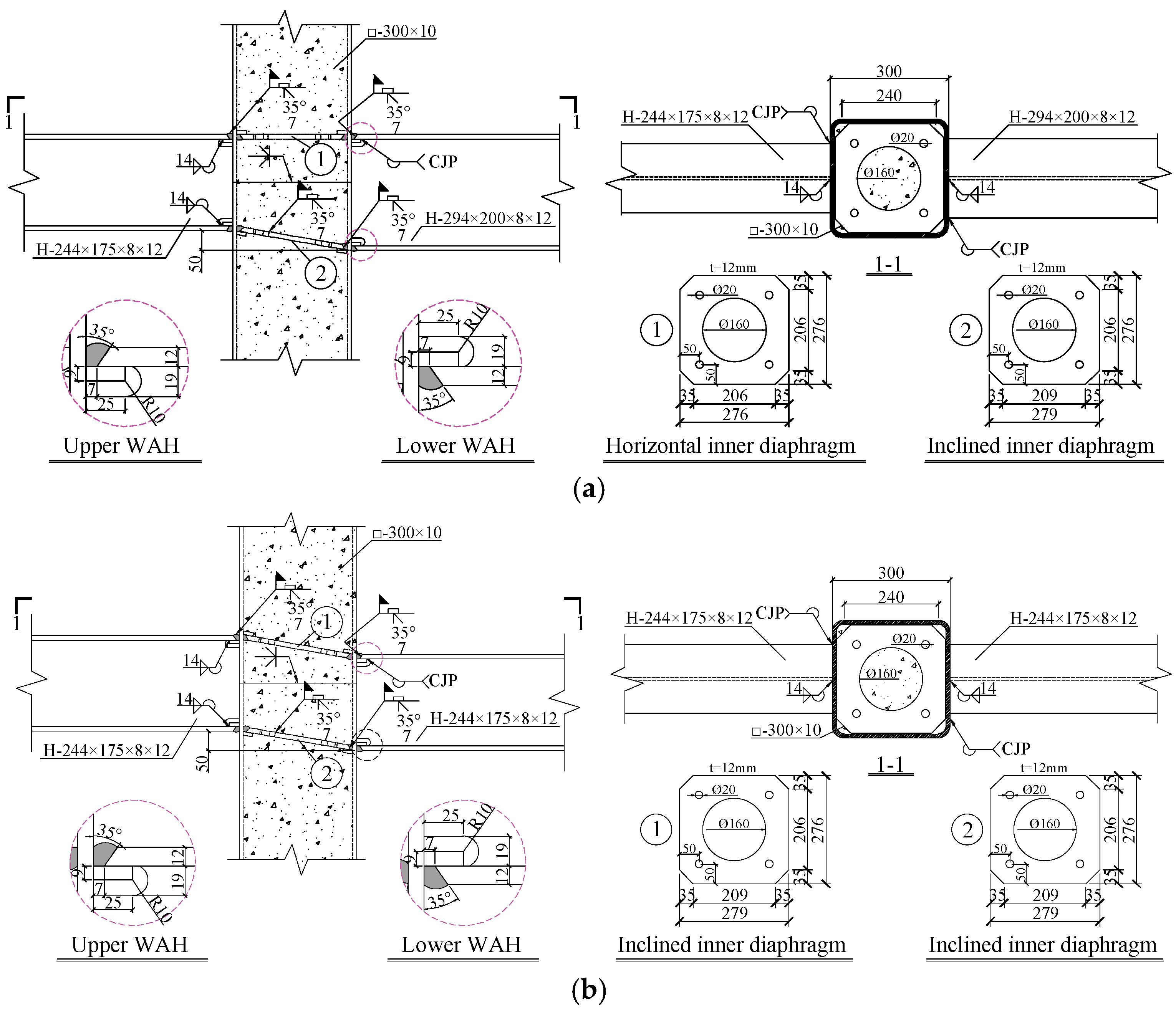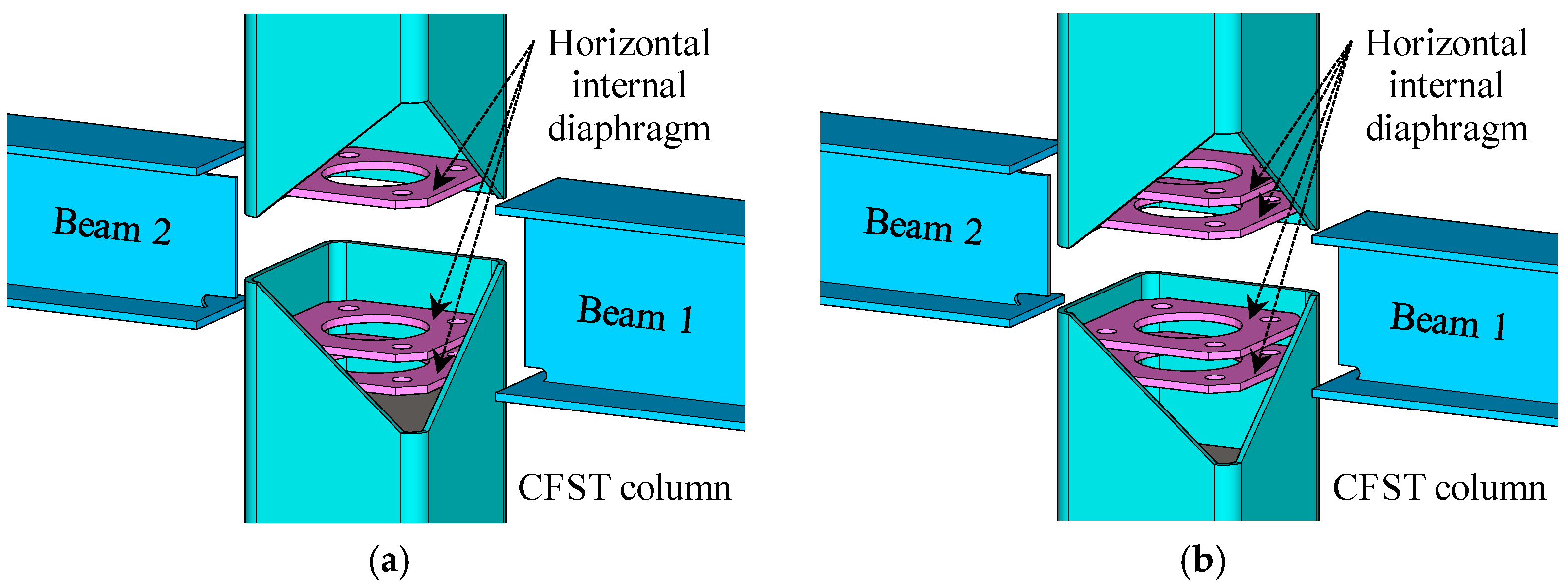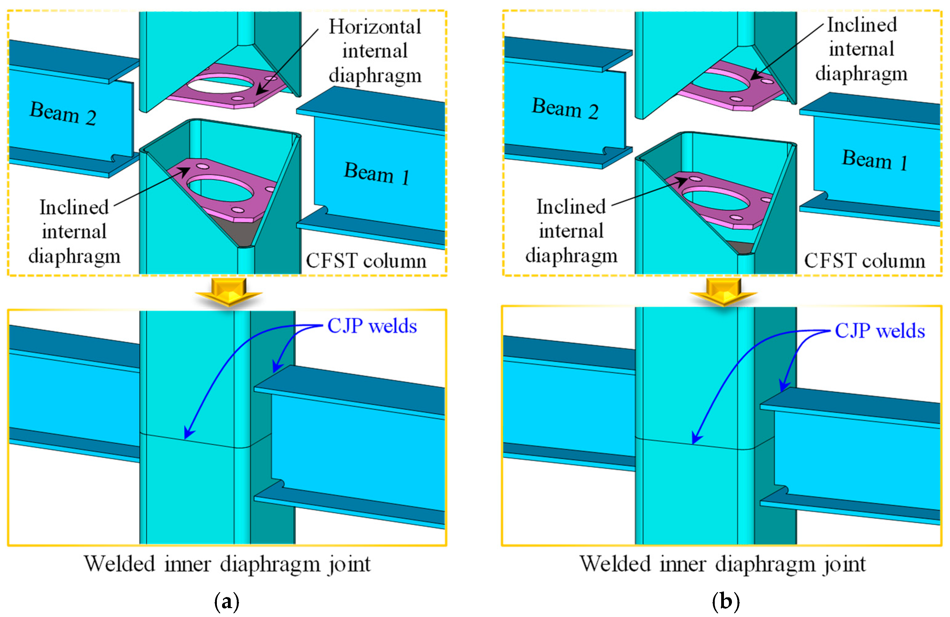2]. Among various types of beam-to-column joints, those with internal diaphragms (IDs) are particularly prevalent in China and other Asian countries. Such joints not only ensure efficient force transfer but also provide a smooth exterior surface, facilitating architectural integration and improving overall constructability [
