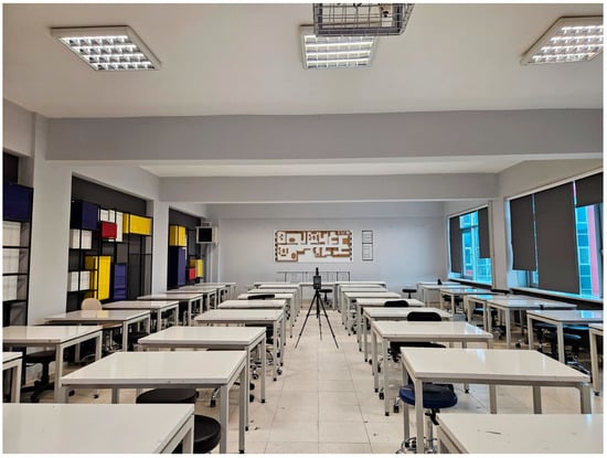 According to WHO guidelines, the recommended classroom noise limit is 35 dB(A), while Turkish regulations specify 35 dB(A) for closed windows and 45 dB(A) for open windows [37]. Other studies suggest thresholds of 35–47 dB(A) depending on room size and function [33,38], and 40–60 dB(A) for outdoor noise in design studios [33]. Because educational spaces are shaped by pedagogy, duration, and student profile, effective design—especially in applied disciplines such as architecture and interior architecture—requires flexible, adaptive solutions ensuring sustainable acoustic comfort [34,35].