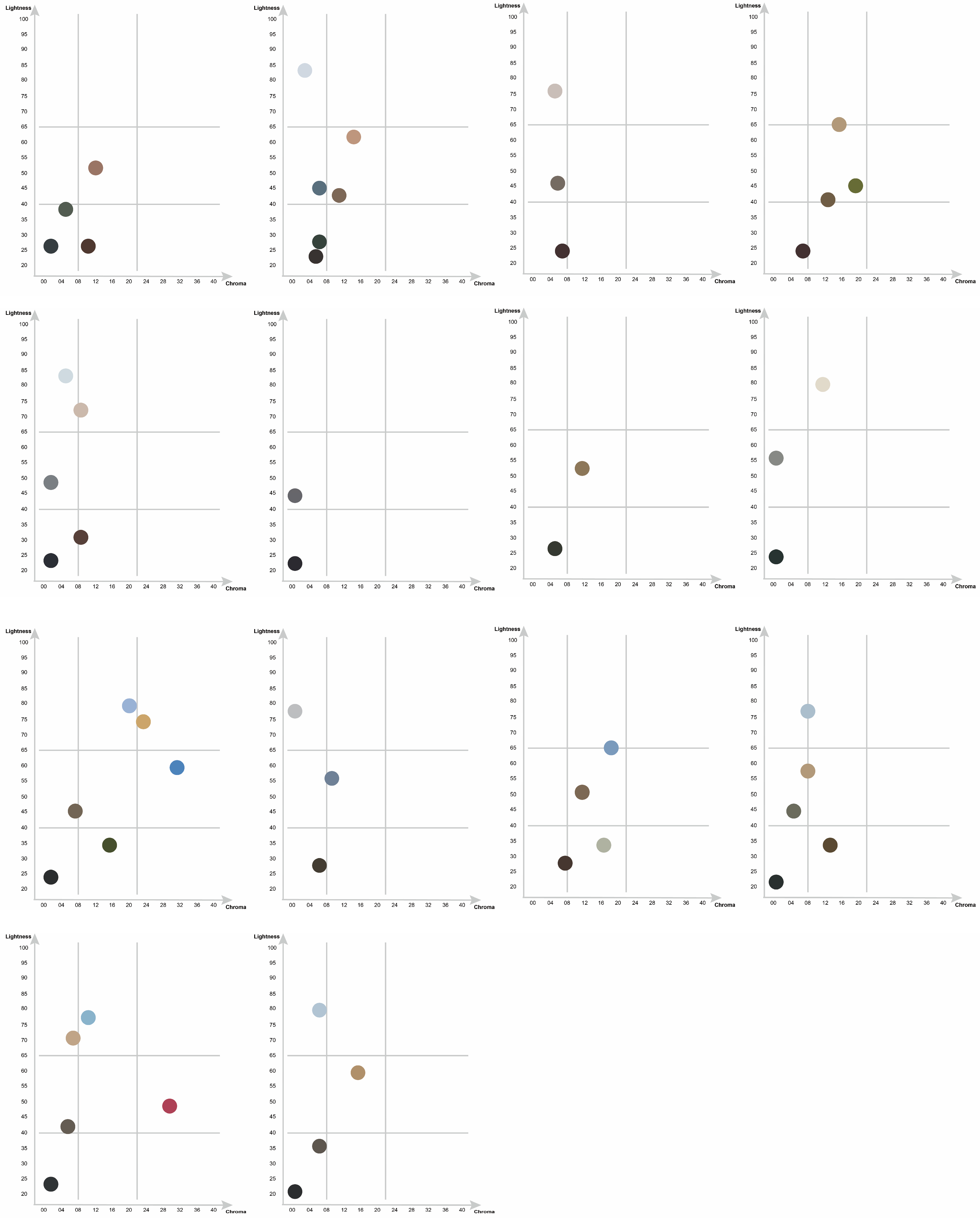 To answer RQ1. What are the dominant chromatic attributes (hue, lightness, chroma) of Hebei’s ancient villages.