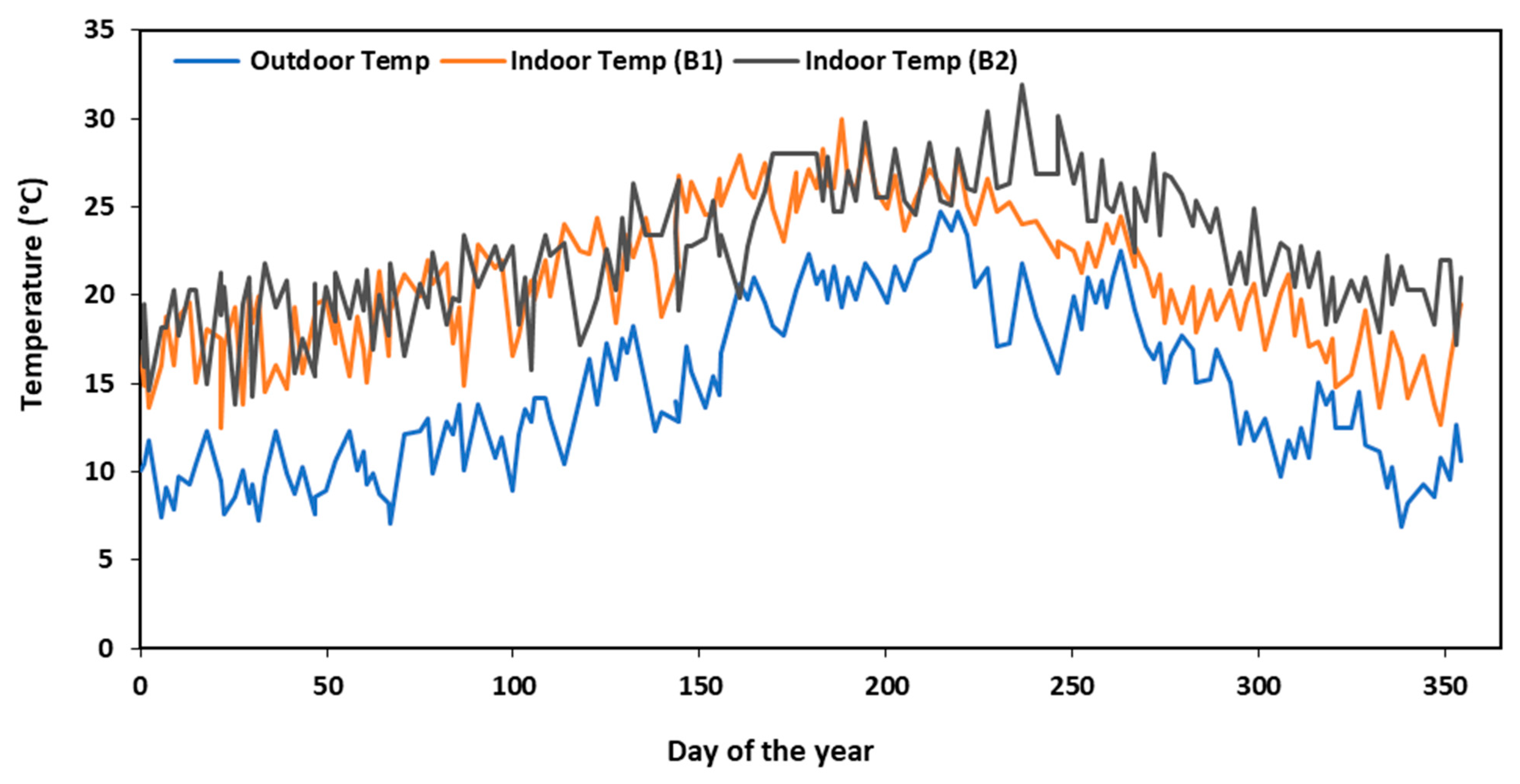 - Toroxel, J.L.; Silva, S.M. A review of passive solar heating and cooling technologies based on bioclimatic and vernacular architecture. Energies 2024, 17, 1006. [Google Scholar] [CrossRef]