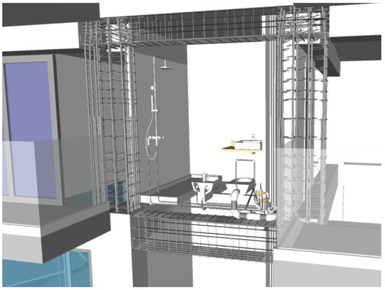 In building design, the transfer of architectural and structural information is crucial for MEP (Mechanical, Electrical, and Plumbing) design. To evaluate the correct interpretation of information between the structural and MEP models, a portion of the building’s plumbing system was modeled (Figure 19). This modeling was performed using Revit® BIM Authoring software, based on references from the linked architectural and structural models. Thanks to functionalities of Revit®, it was possible to verify the connection of all parts of the system and conduct clash analyses on the system components. However, clash detection performed with Revit® has the limitation of being able to execute clash analyses only on models created with Revit® and imported as direct links through native files. For clash analysis between models linked indirectly via the IFC standard, specific software such as Navisworks® is required.