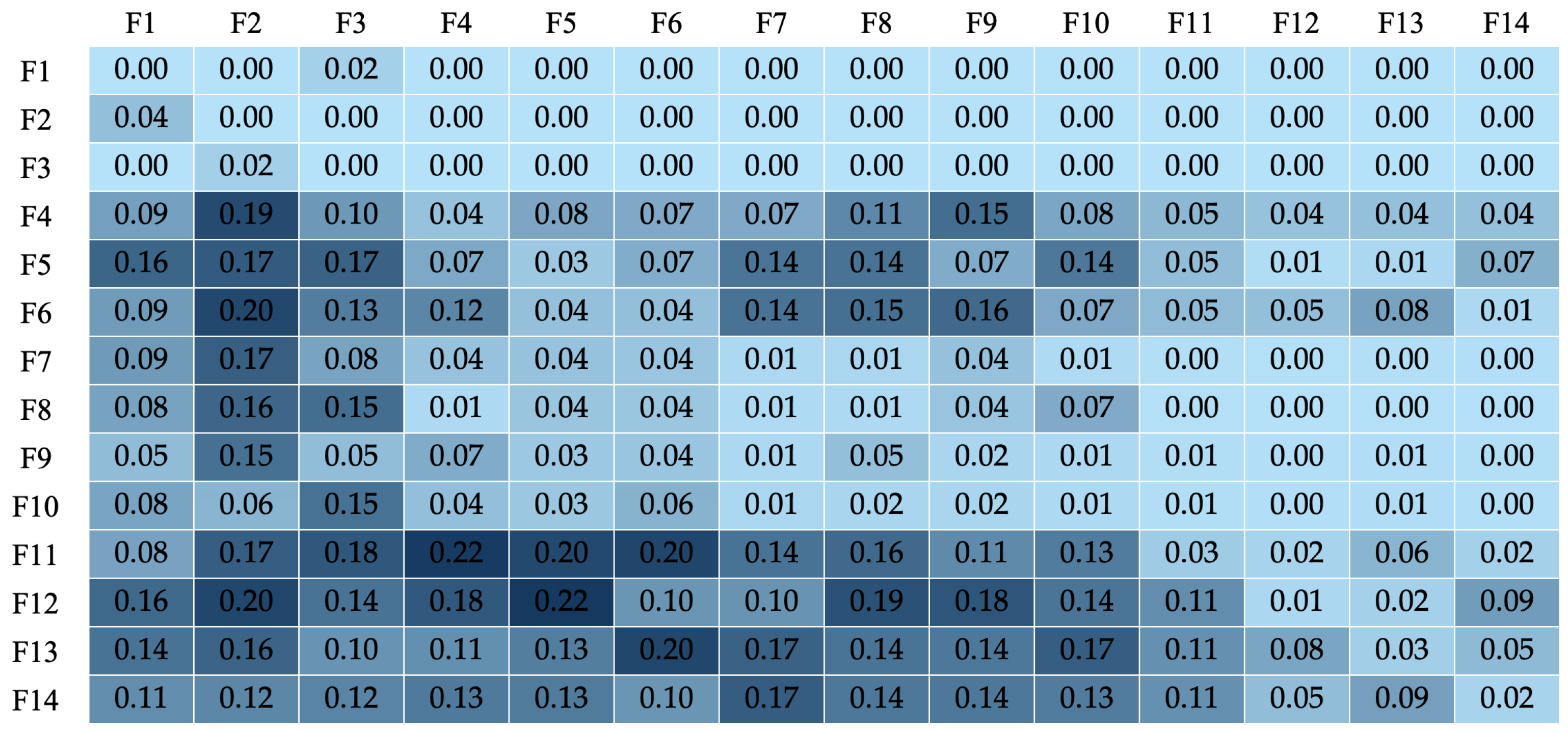 To ensure representative inputs, a “dual-source fusion” strategy is used. Nine senior experts scored the direct influence between any pair