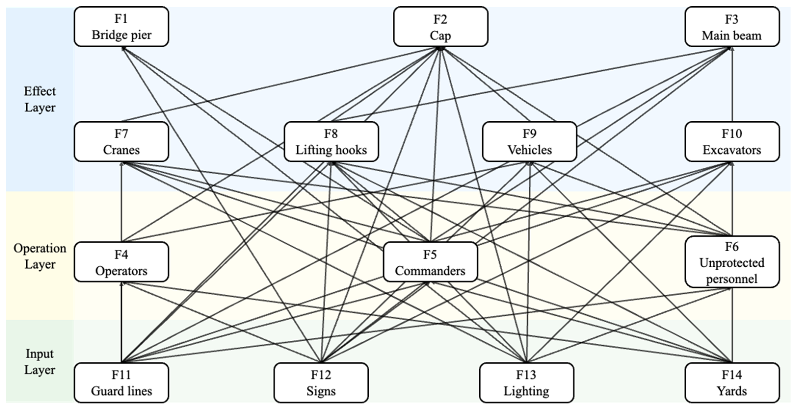 In this study, the primary risk scenarios selected are fall, collision, injury, structural damage and strike. The mapping relationships between these five risk scenarios and risk elements are shown in the table below. These five scenarios are defined by combining the DEMATEL–ISM causal structure (