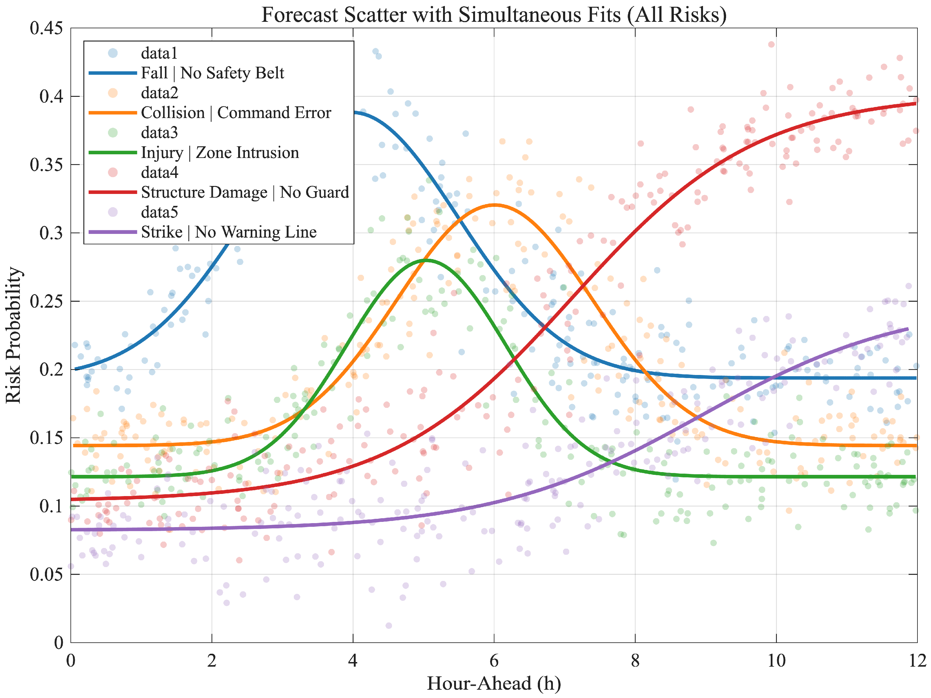 These findings address the long-standing limitations of static, expert-driven risk evaluation by providing a mechanism for continuous, uncertainty-aware prediction. In doing so, the framework bridges the methodological gap between onsite visual monitoring and dynamic probabilistic decision-making. Beyond its theoretical contribution, this work offers practical guidance for improving real-time safety interventions—supporting proactive resource allocation, targeted supervision, and early warning of cumulative hazards in complex construction environments.