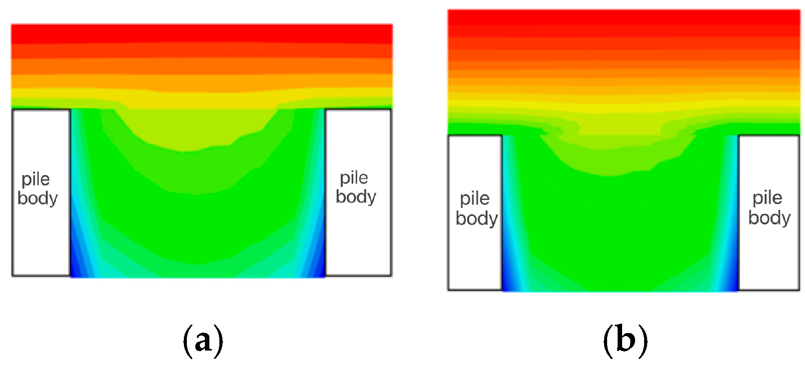 - The evolution process of the soil-arching effect can be divided into three stages: non-arch stage, arch transition stage, and soil-arching stage. When the filling subgrade reached 0.65 times the pile spacing, the vertical stress of the soil began to shift to the pile heads, leading to stress concentration and the forming of a stress arch. When the filling height reached 1.15 times the pile spacing, the overlying load was transmitted to the pile heads through the stress arch, a low-stress zone was formed, and the stability of the foundation was thereby enhanced.