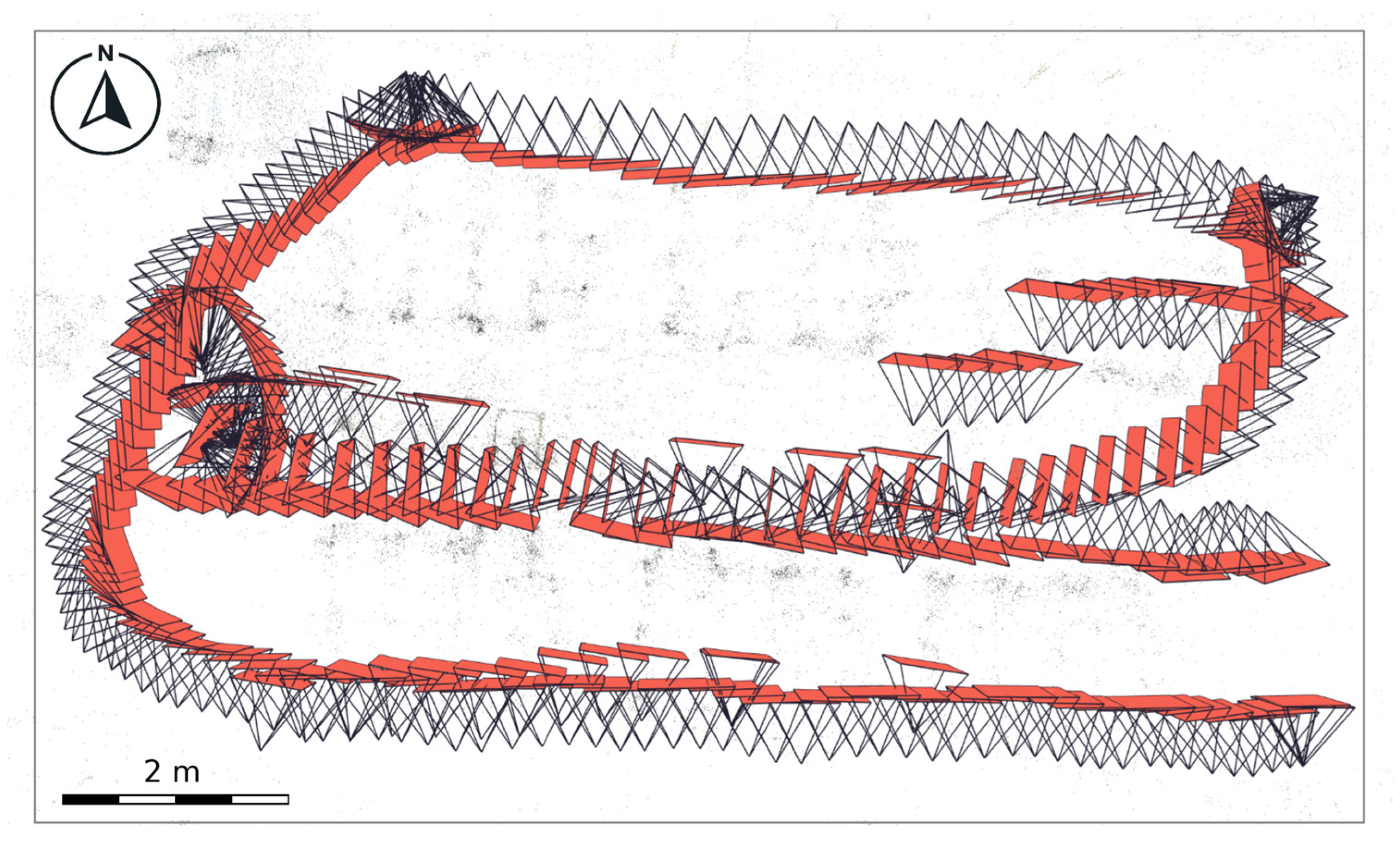 This trend emphasizes the importance of spatial image overlap in achieving robust matching features. Visual gaps between consecutive views at lower frame counts limit COLMAP’s ability to identify consistent key points and reduce pose estimation success. As the number of frames increases, the likelihood of overlapping content improves. The observed jump in performance beyond 250 frames suggests that spatial coverage became sufficient for this particular case. However, the optimal threshold may vary depending on scene complexity, camera motion, and lighting conditions.
